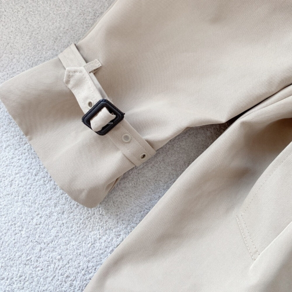 An icon of effortless sophistication, this beige trench coat brings a refined finish to any look. Designed with a relaxed yet structured fit, it features classic double-breasted button closure, storm flaps, and a belted waist that enhances the silhouette. The adjustable cuff straps and epaulets lend a polished, tailored appeal.
