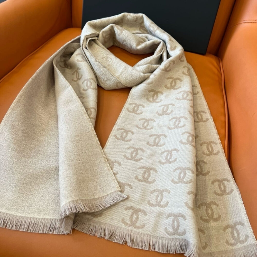 Replica 1:1 – Chanel 24B Full CC Scarf Beige And Milk Tea 180Cm