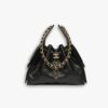 This is a beautiful Chanel handbag made of quilted denim. It features a distinctive double C logo and a gold chain strap. The dark denim and gold hardware create a classic and elegant look.