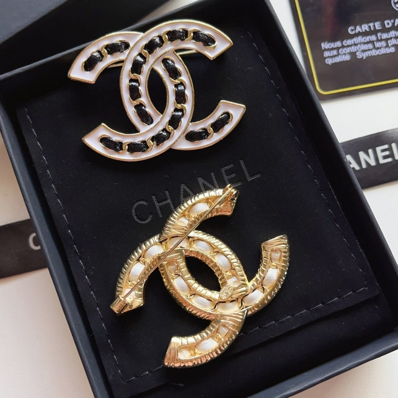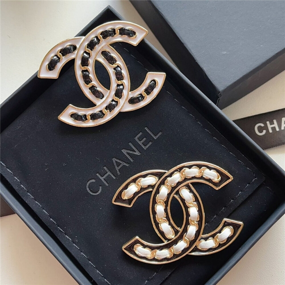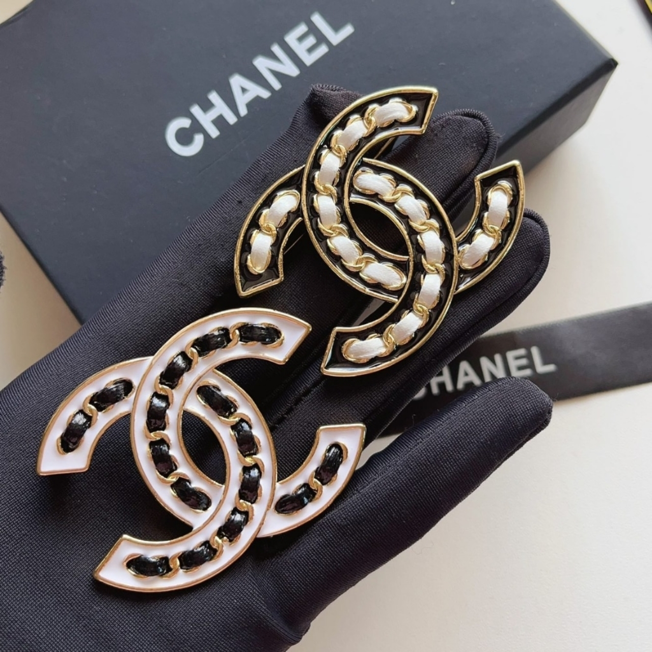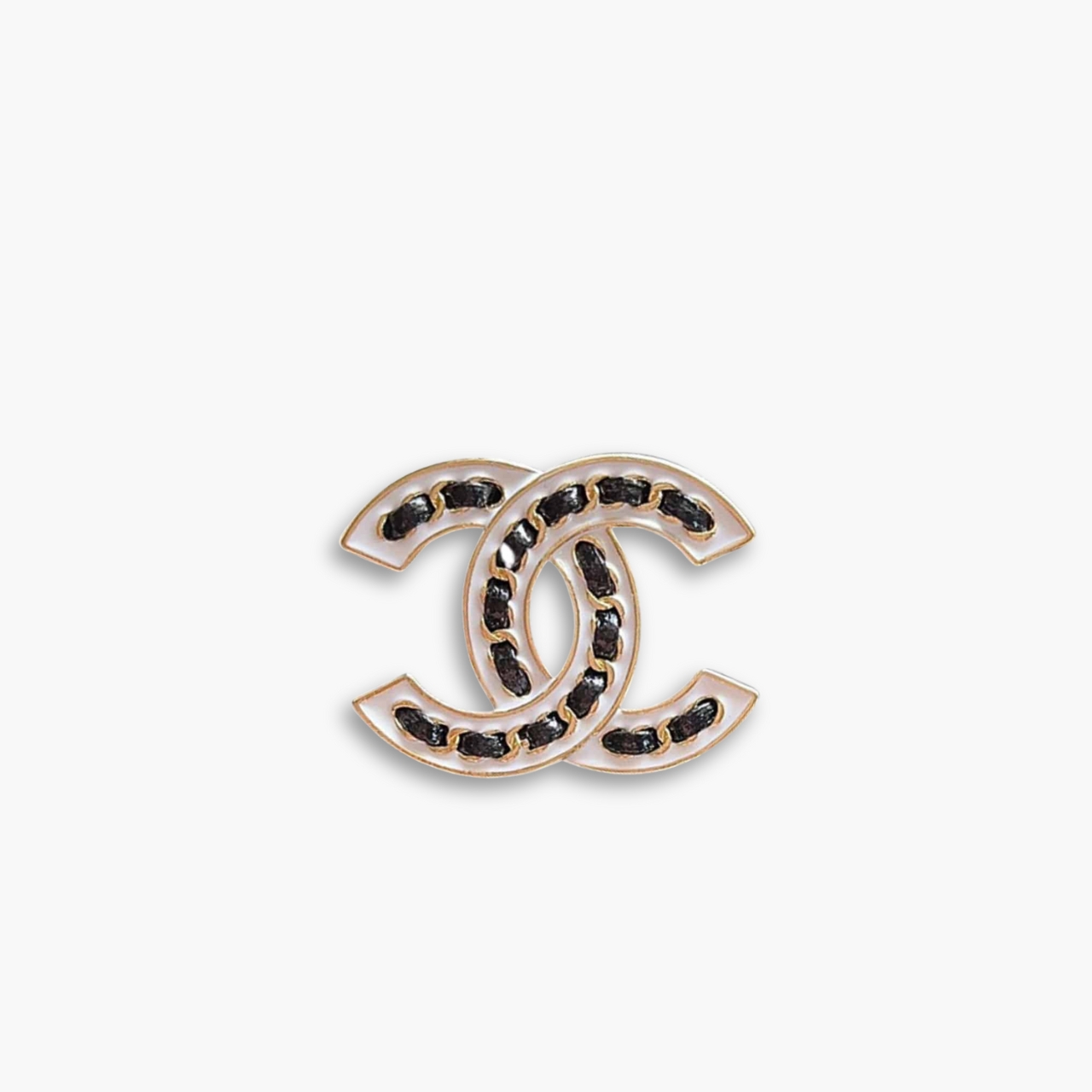 CN CC Brooch White With Black Interwoven Chain Pattern