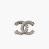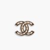 Chanel CC Brooch White With Black Interwoven Chain Pattern