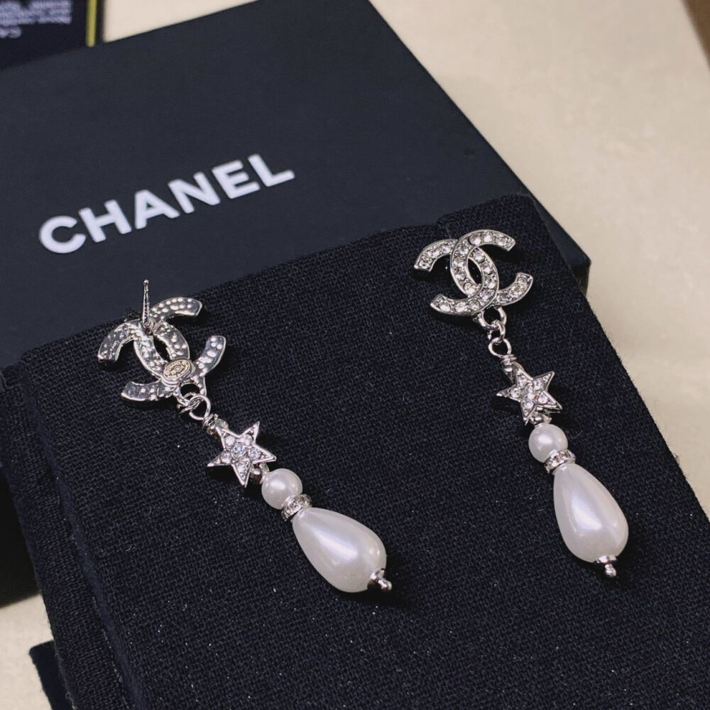 Replica 1:1 – Chanel CC Crystal Star And Pearl Earrings Silver
