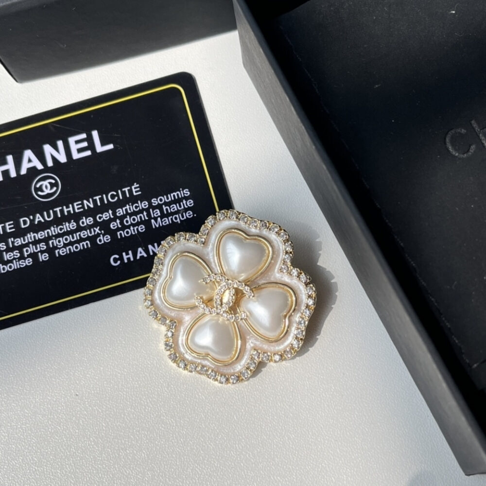 Replica 1:1 – Chanel CC Flower Brooch Gold With Pearl Heart