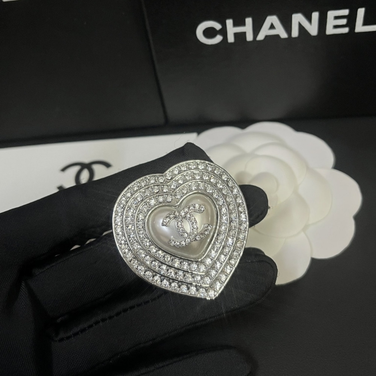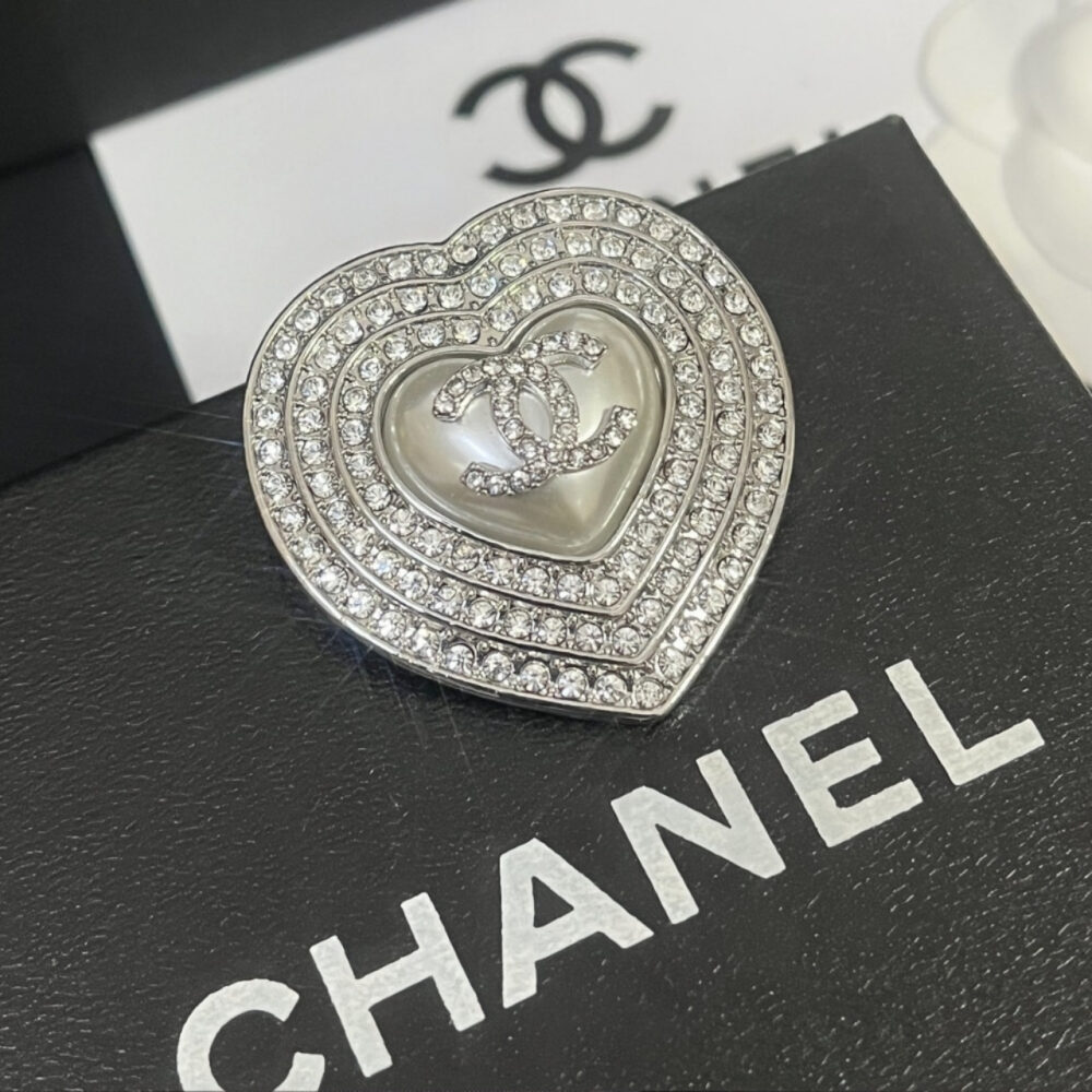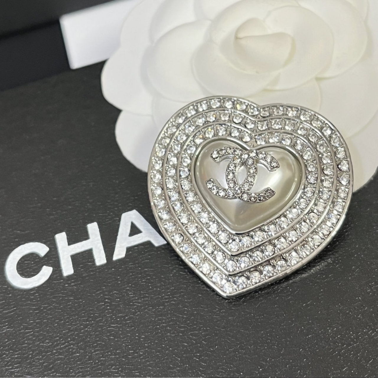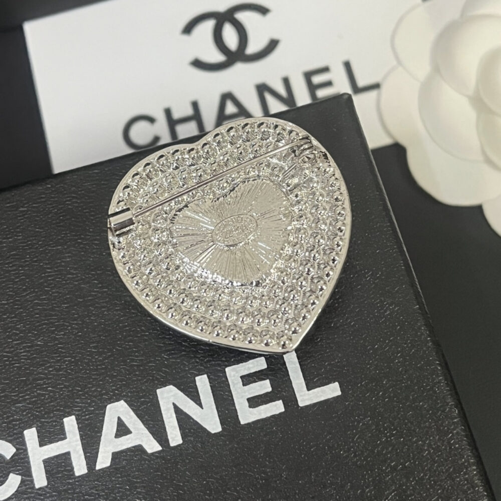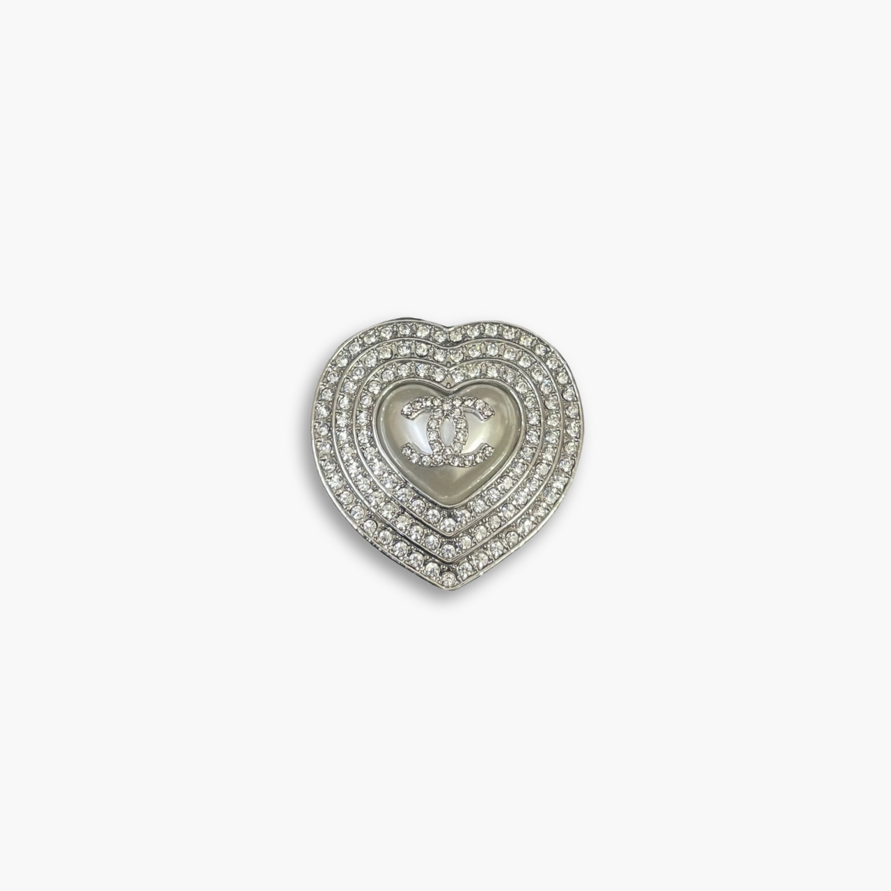 Chanel CC Heart Brooch Silver With Pearl Heart