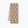 A timeless expression of sophistication, this Chanel scarf showcases the iconic interlocking CC monogram in an elegant beige and ivory palette. The neutral tones make it a chic complement to any outfit, embodying effortless Parisian elegance.