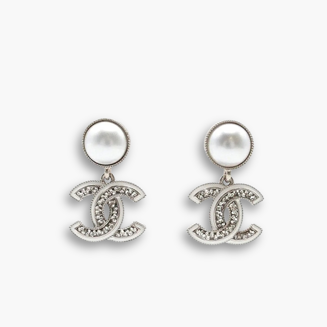 Replica 1:1 – Chanel Double C Pearl Earrings Silver White