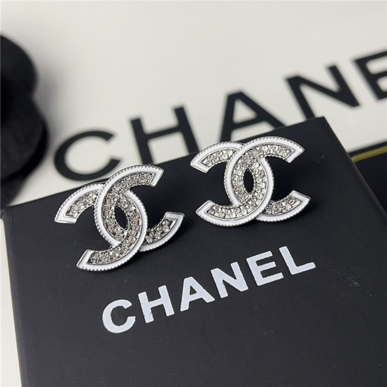 Replica 1:1 – Chanel Stud Earrings Silver White And Crystal ABE867 B19263 NADDV