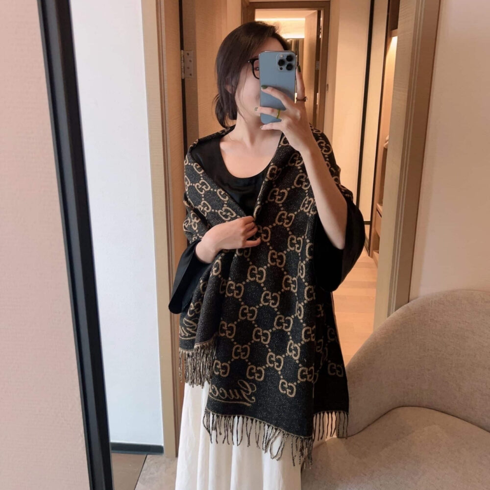 Gucci GG Jacquard Wool Scarf Black And Beige