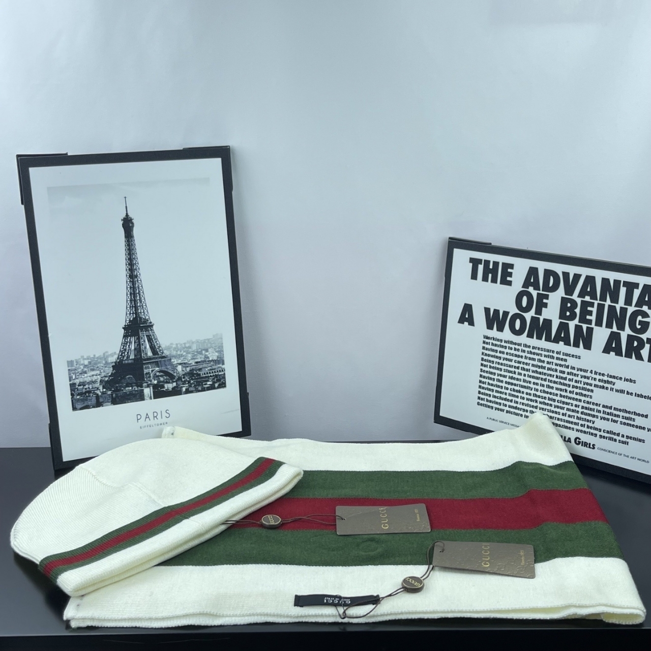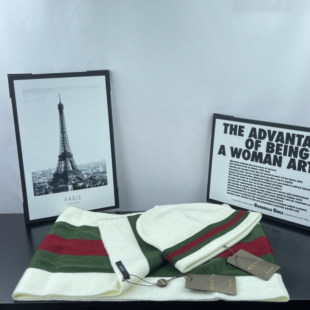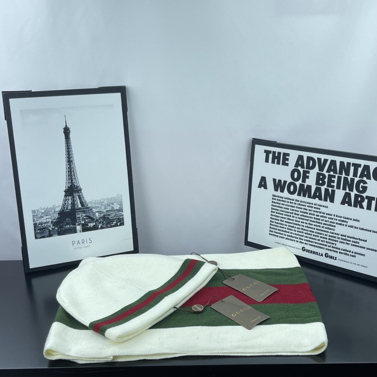 Replica 1:1 – Gucci Knit Beanie And Scarf White Wool Set