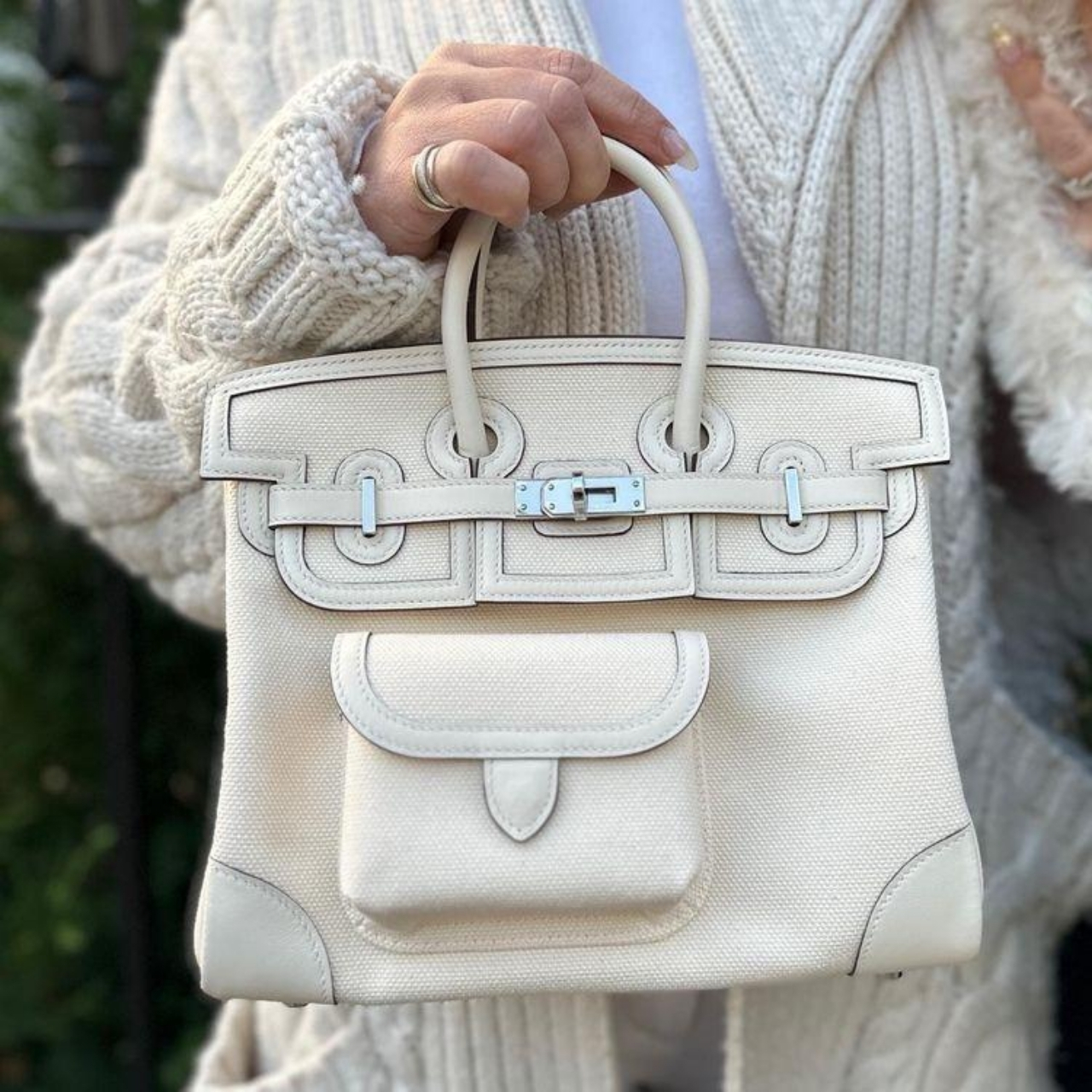 HM Birkin Cargo 25 Travel Bag White Toile Goeland/ 25 cm / 9.8 inches