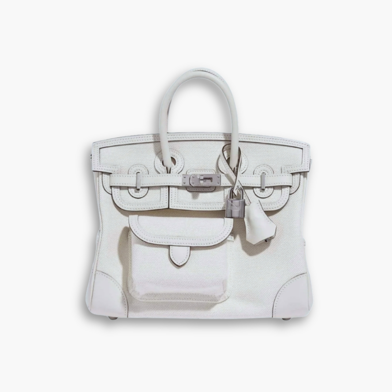 Hermes Birkin Cargo 25 Travel Bag White Toile Goeland 25Cm