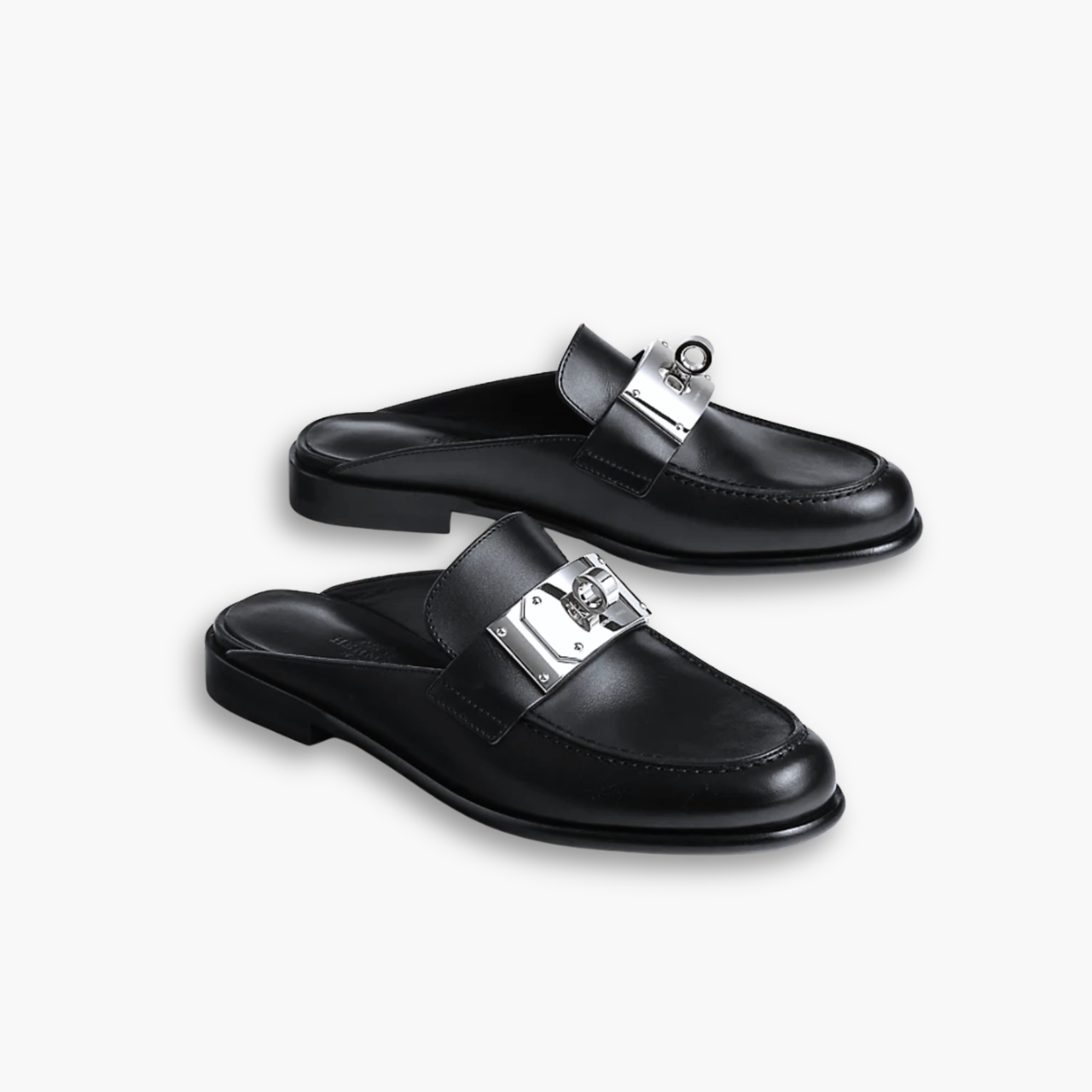 The Hermès Lota Mule Black H241159Z 02350 exudes effortless sophistication with its sleek silhouette and luxurious black. Its minimalist open-back design and subtle Hermès detailing create a refined statement of modern elegance.
