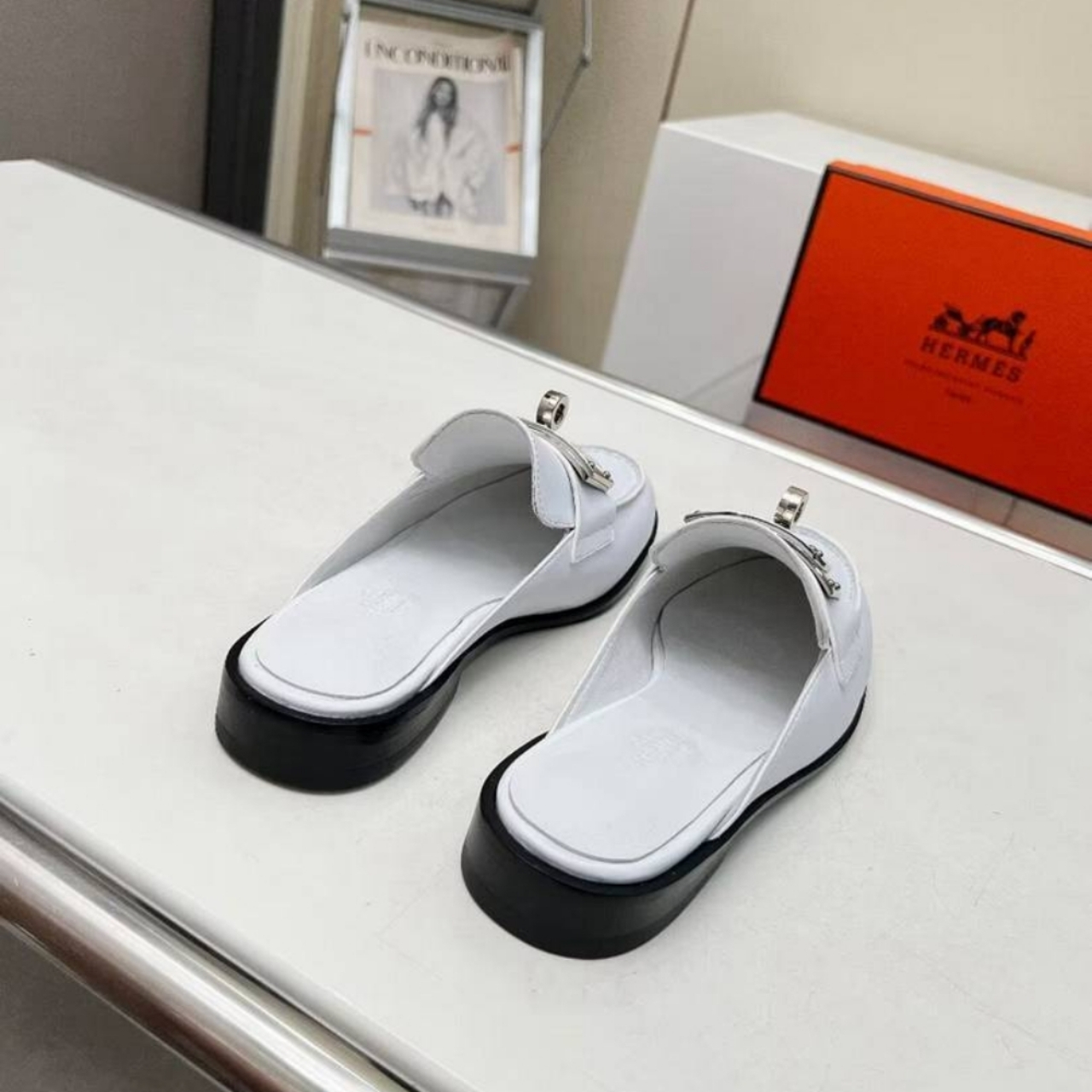 Hermes Lota Mule White H241159Z 90360