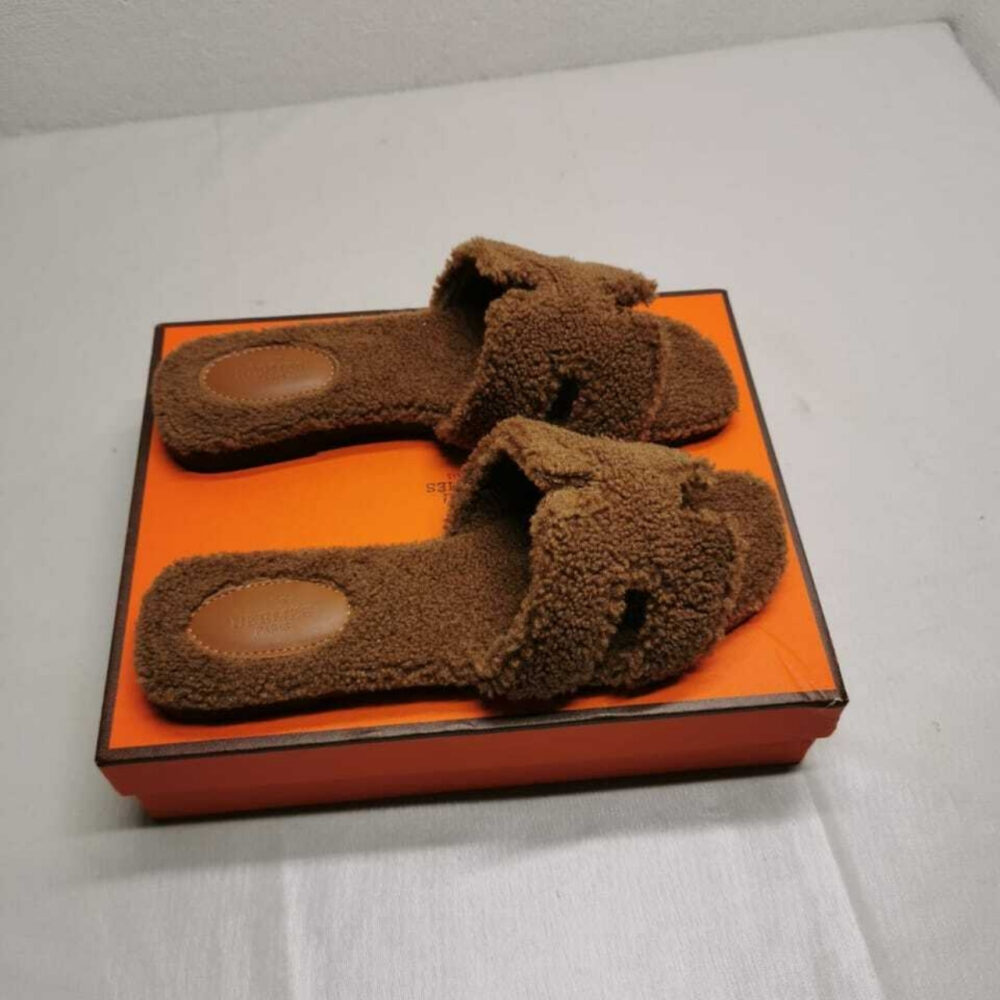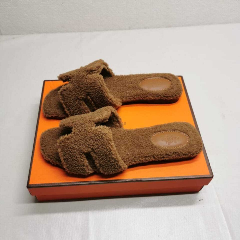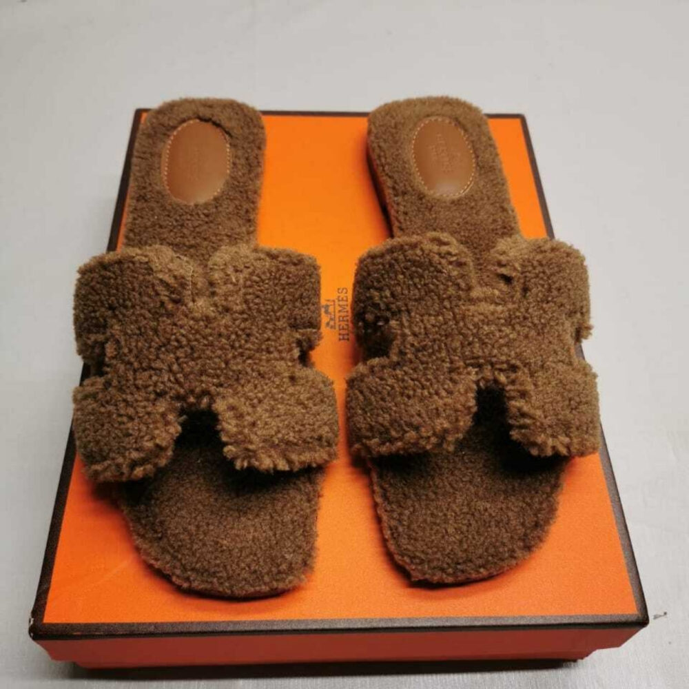 Replica 1:1 – Hermes Oran Teddy Bear Slipper Sandals Cognac