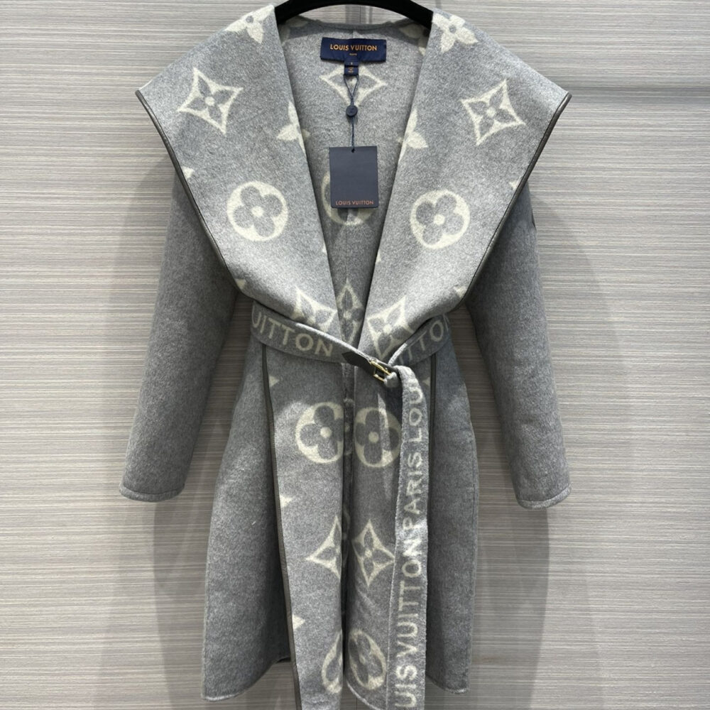 Replica 1:1 – Louis Vuitton Belted Double Sided Hooded Wrap Coat Gray 1A92VF