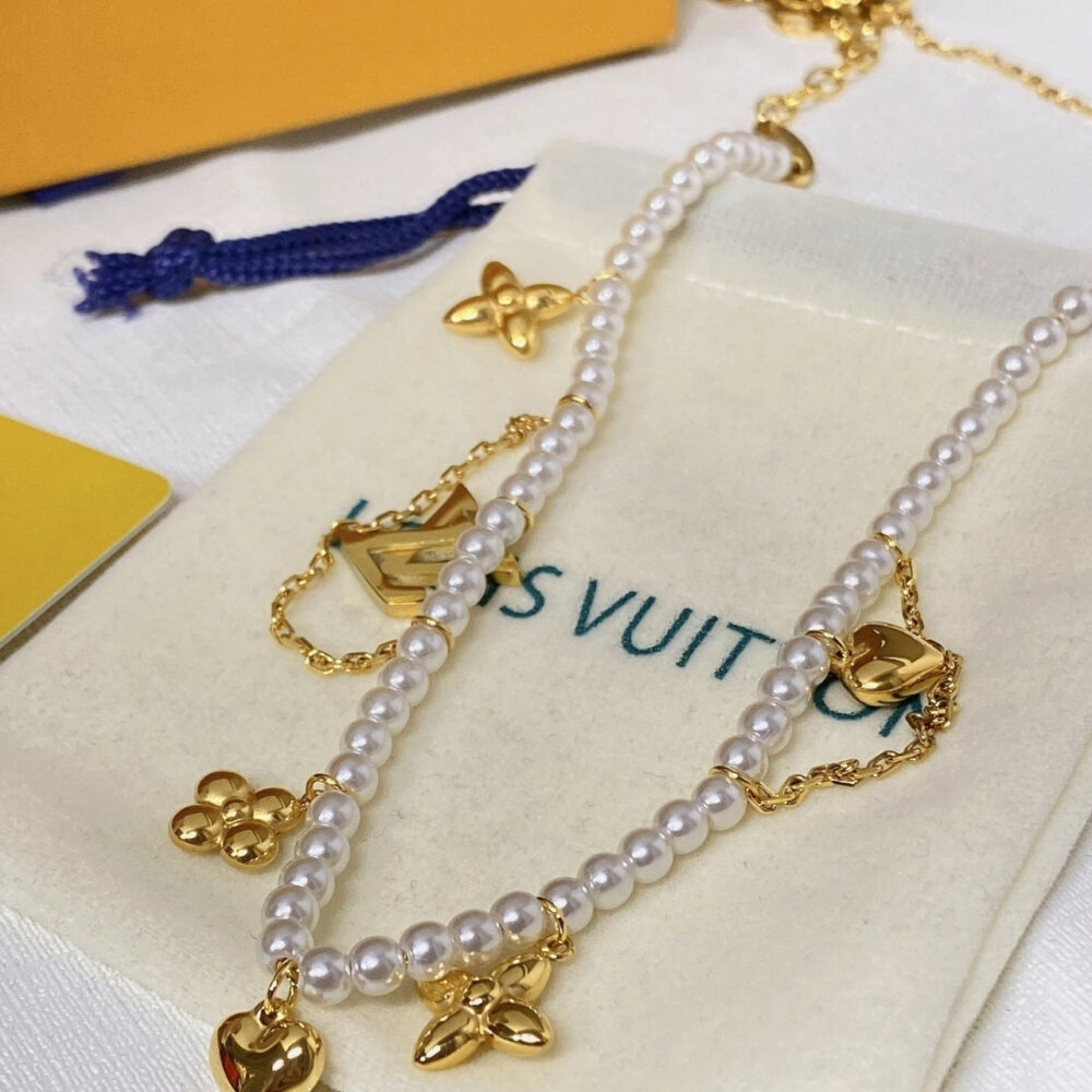 Louis Vuitton Blooming Pearls Necklace Gold M02388
