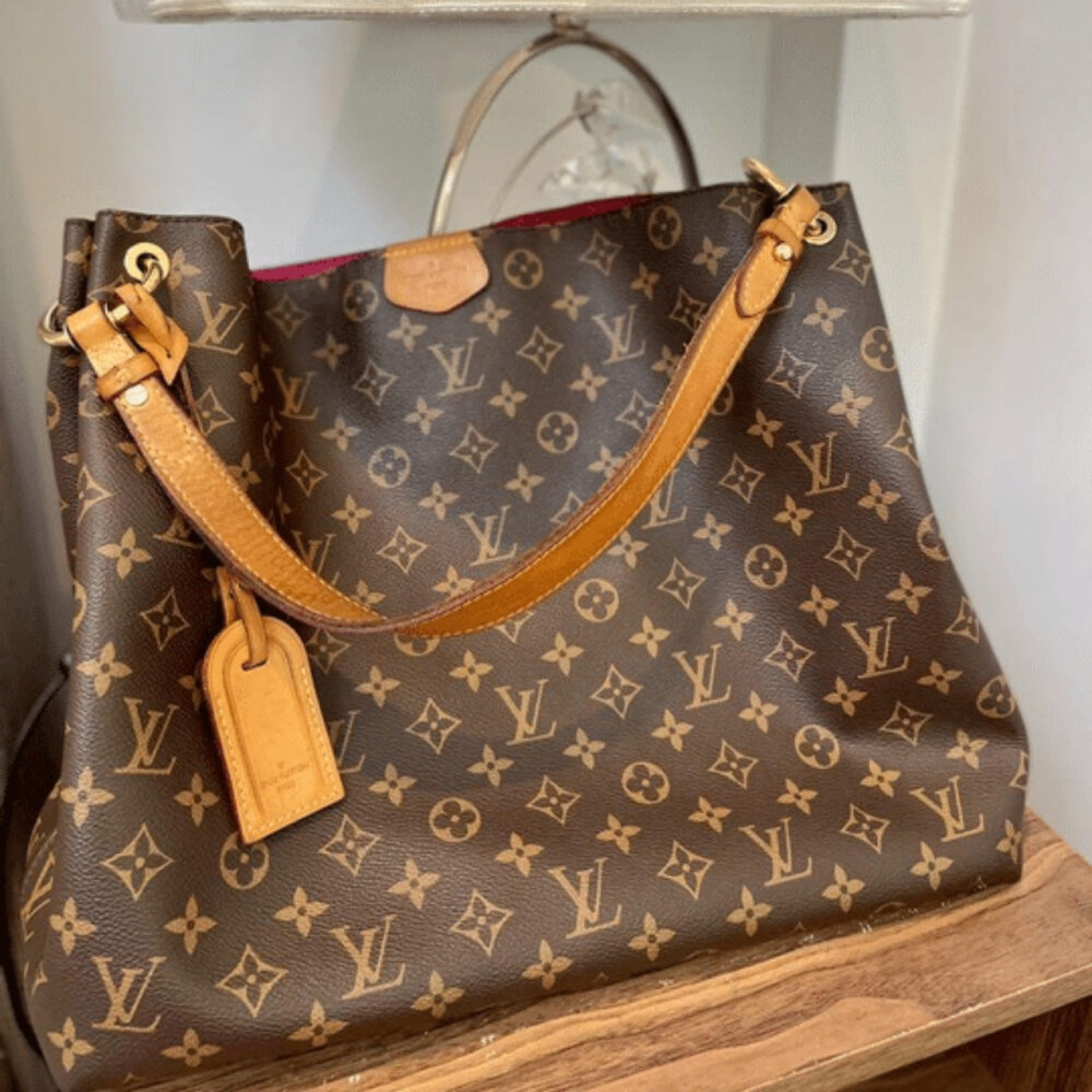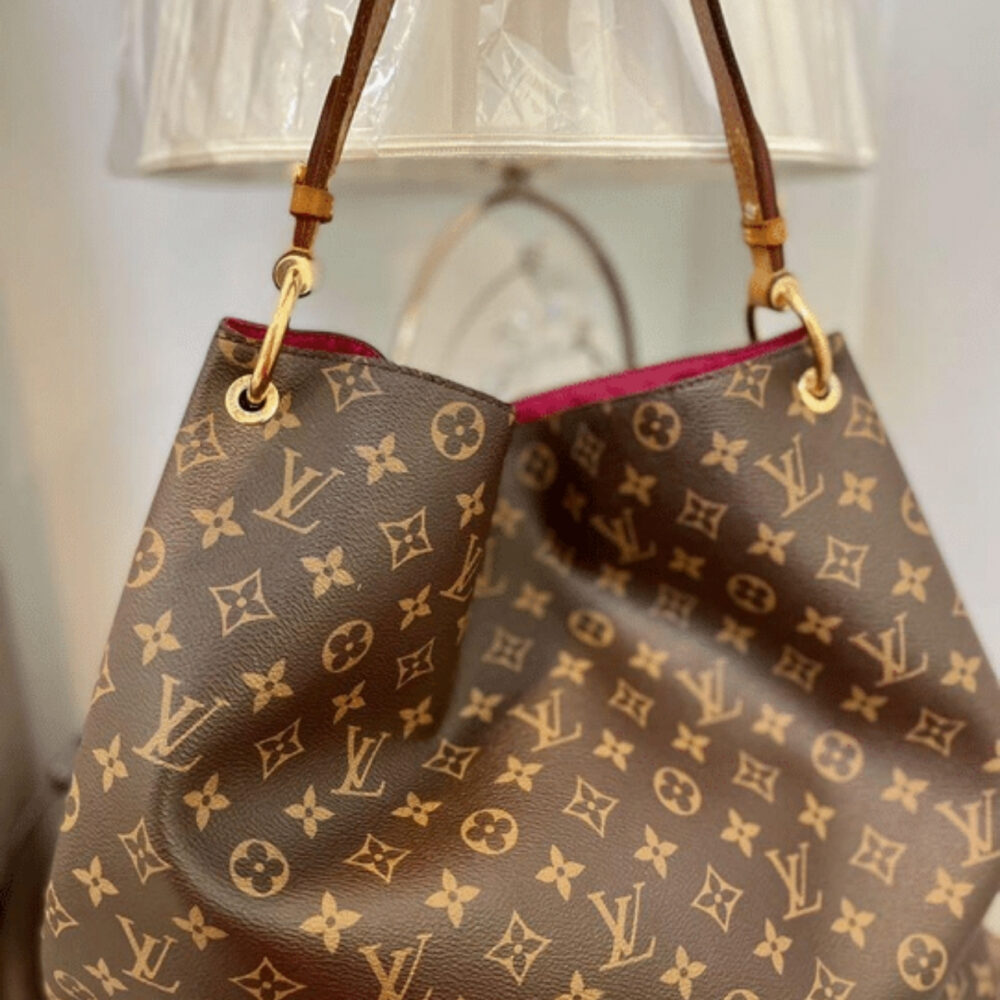 The Louis Vuitton Graceful MM in Monogram canvas is a spacious and lightweight hobo-style bag, perfect for everyday use. Crafted from signature coated canvas with natural leather trim, it features a comfortable flat shoulder strap for easy carrying. The red textile-lined interior adds a touch of elegance while keeping essentials organized.