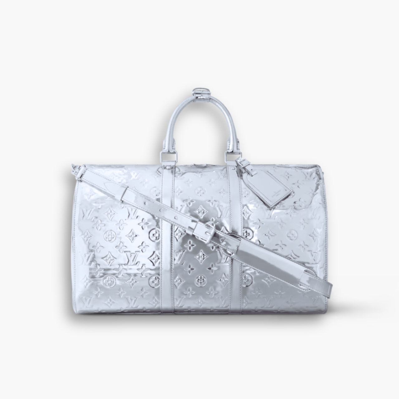 Inspired by a line of limited-edition metal trunks produced by Louis Vuitton in 1892, Monogram Mirror canvas brings a retro-futuristic aesthetic to this Keepall Bandoulière 45 travel bag. Being suitable for travel!