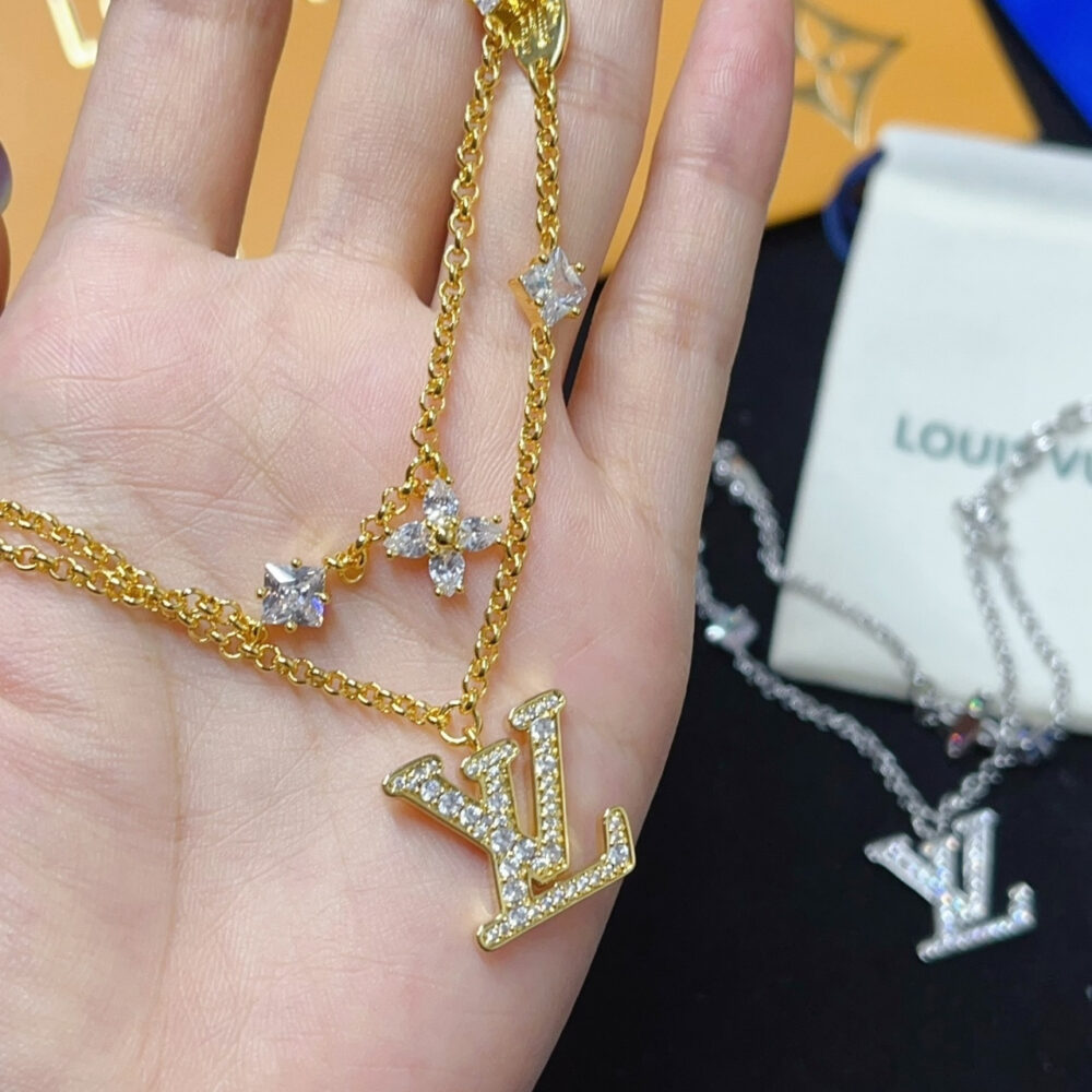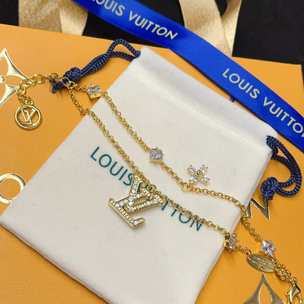 The elegant Lady LV bracelet impresses with iconic Louis Vuitton signatures. The double bracelet design with two gold-tone chains is further enhanced by the LV logo and Monogram flower inlaid with sparkling crystals.