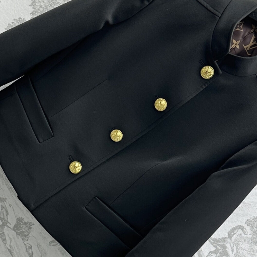 Replica 1:1 – Louis Vuitton LV Button Officer Jacket Black 1AGOKI