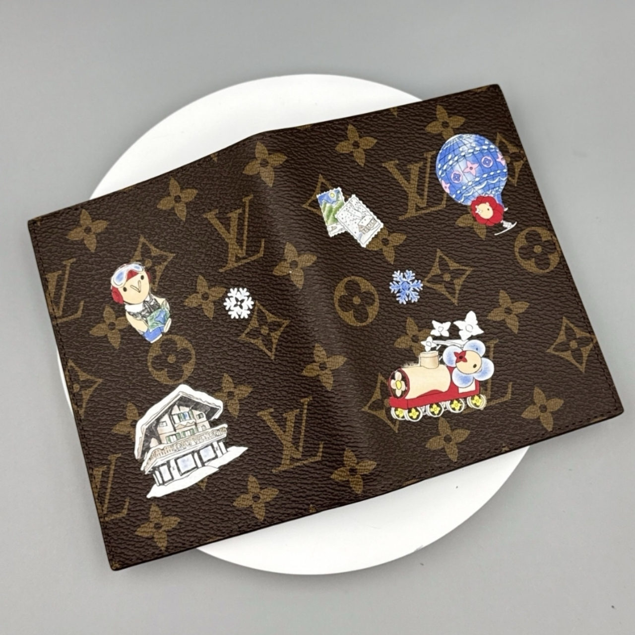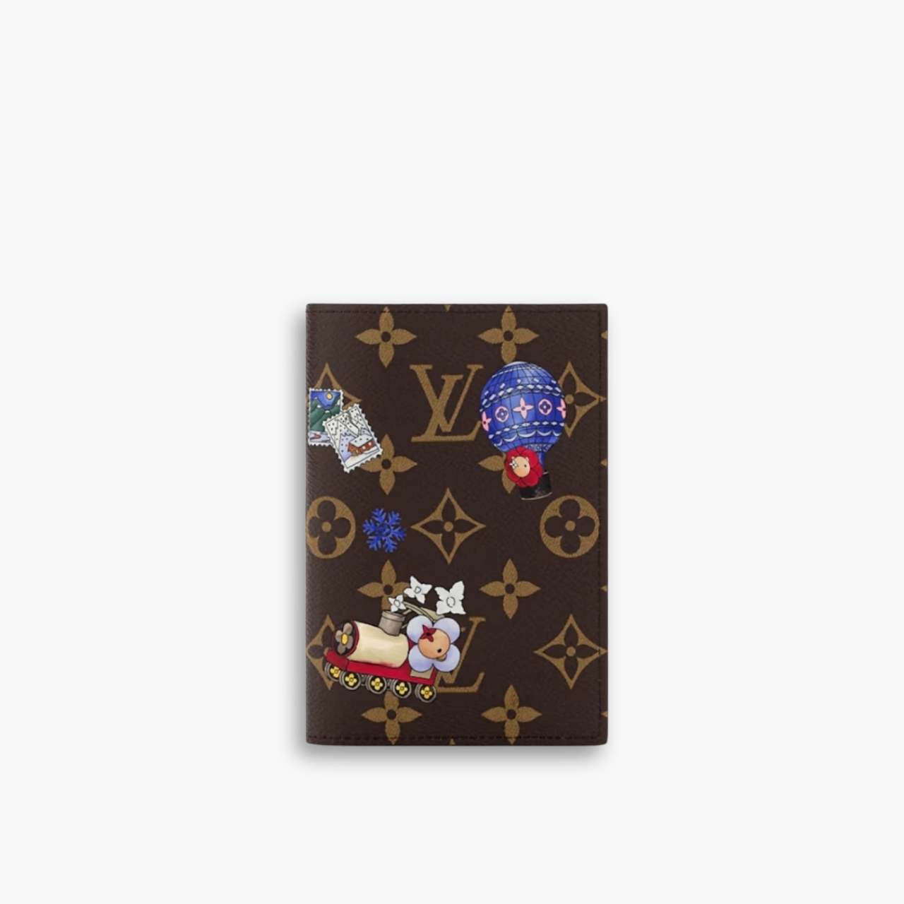 The Vivienne Winter Holiday collection presents this playful Passport Cover, which features charming illustrations of the House’s mascot. It is crafted from signature Monogram canvas and features a contrasting Blue Frost leather lining, adding a vibrant pop of color. The functional design is fitted with two flying pockets, as well as a single flat pocket and four card slots.