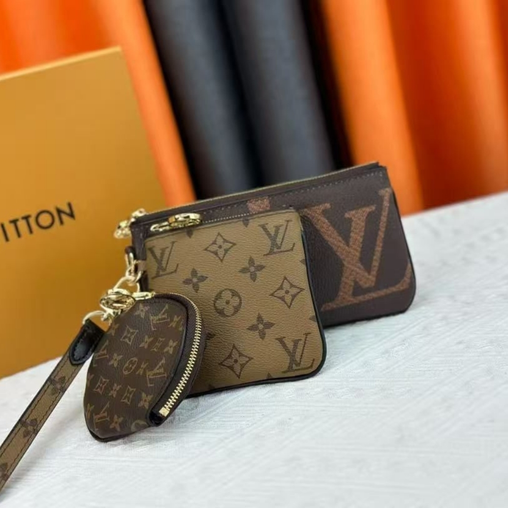 Replica 1:1 – Louis Vuitton Reverse Monogram Giant Trio Pouch Brown 19Cm