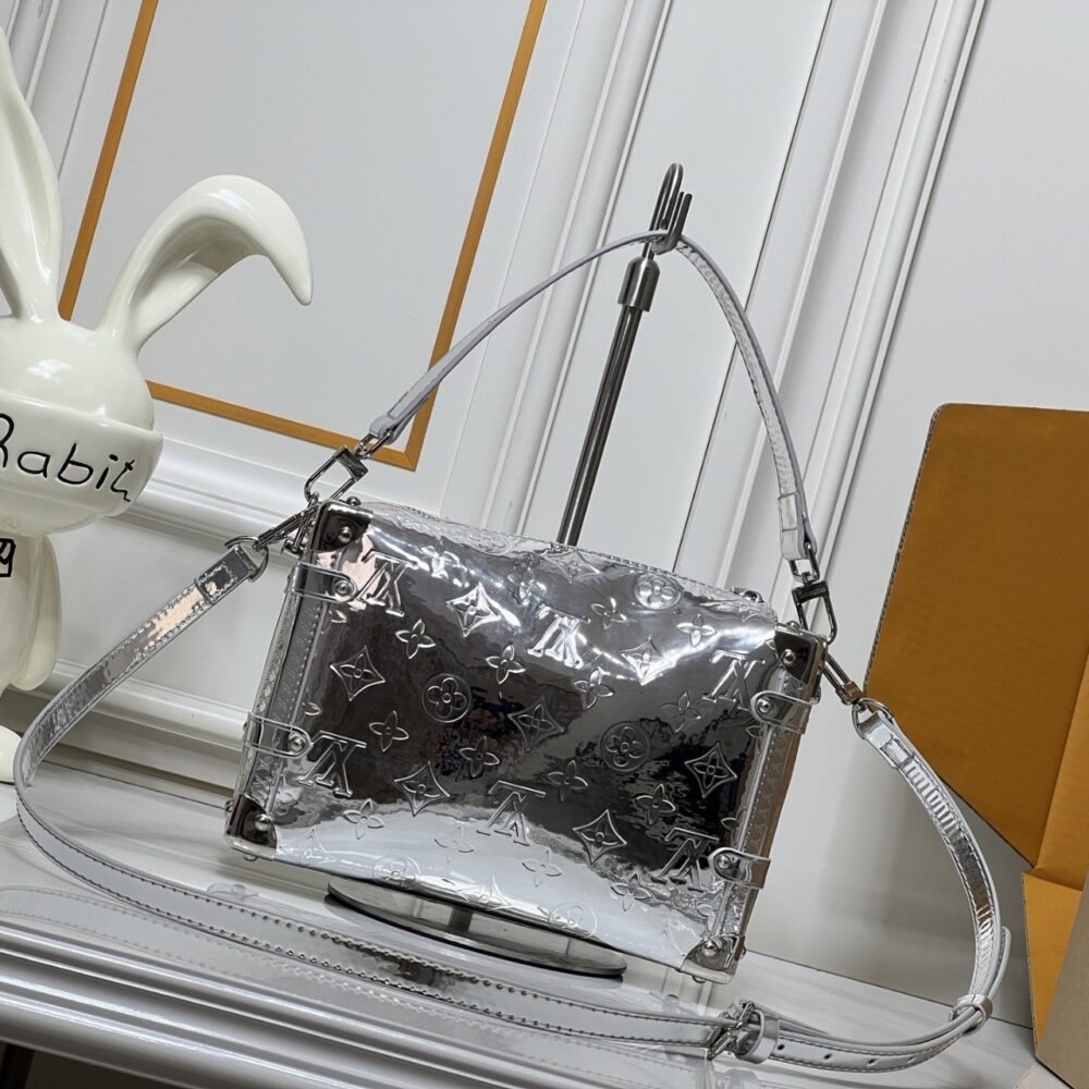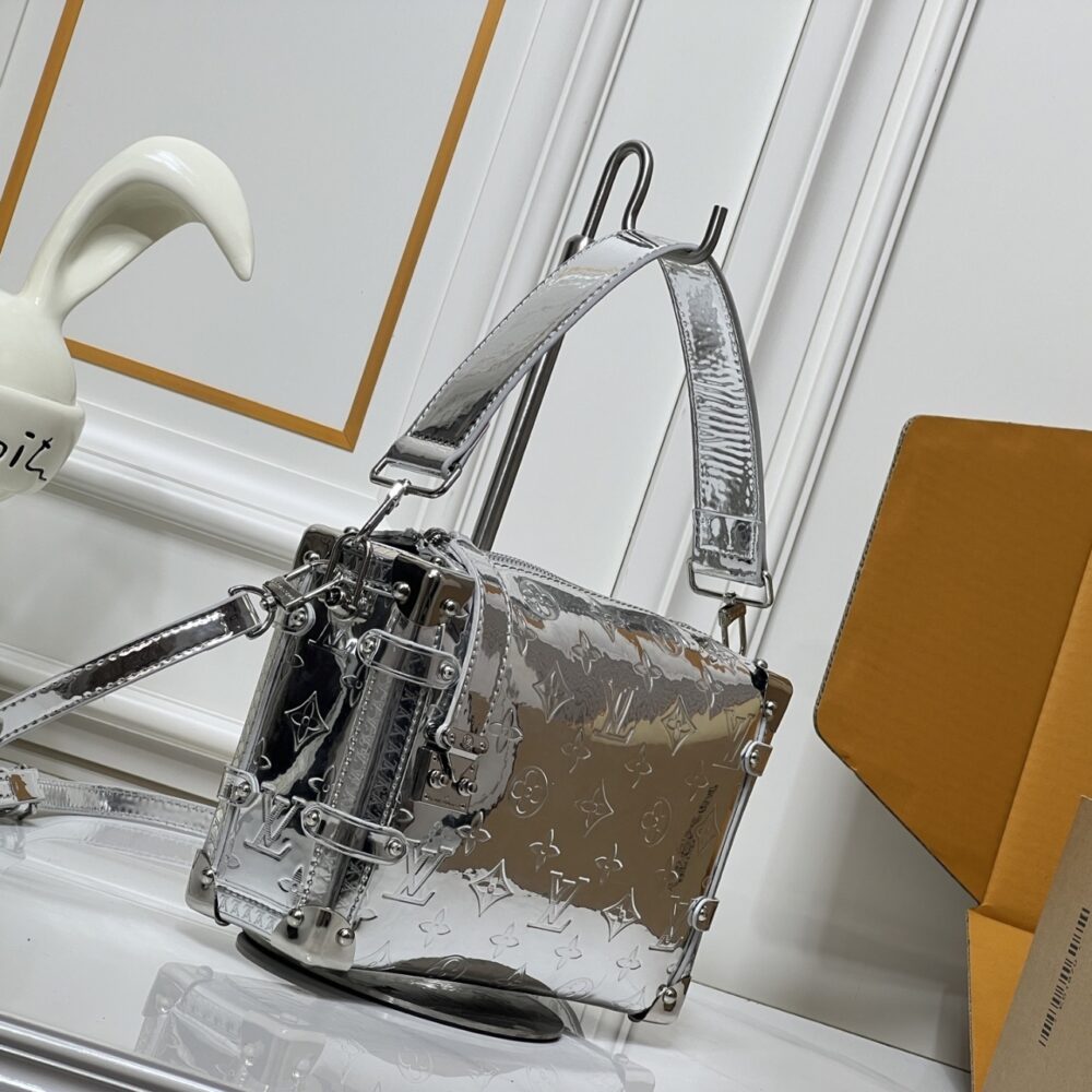 An elegant après-ski option, this Monogram Miroir Side Trunk MM makes a fashion statement with its light-catching finish. It is crafted with a bold Silver colorway that adds a futuristic feel and is adorned with a signature S-lock in a tonal finish. A day-to-evening bag that transitions effortlessly from winter outings to sophisticated soirées.