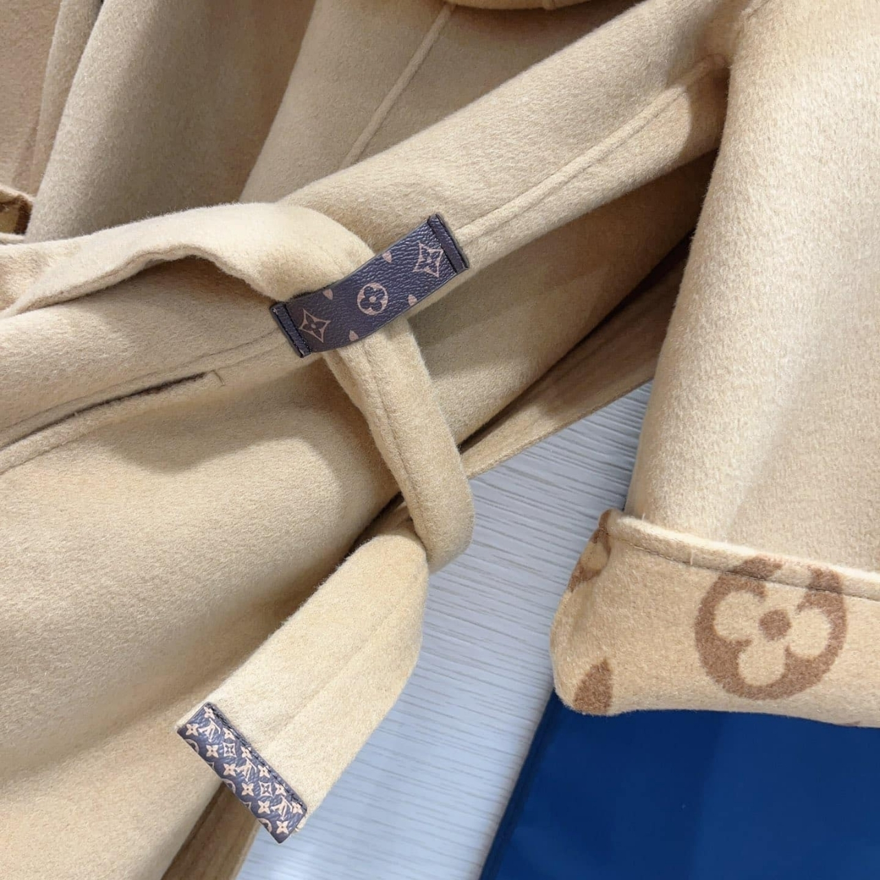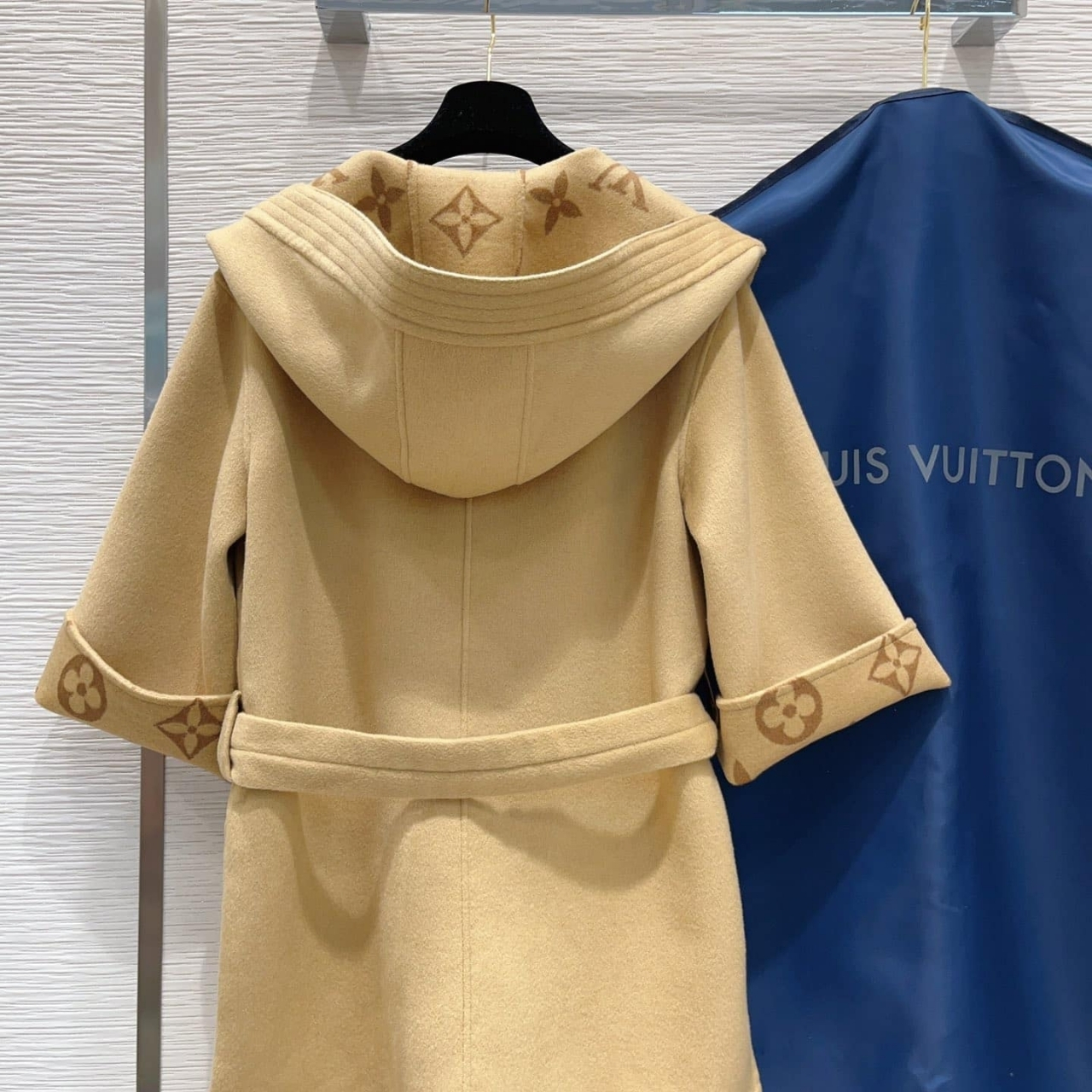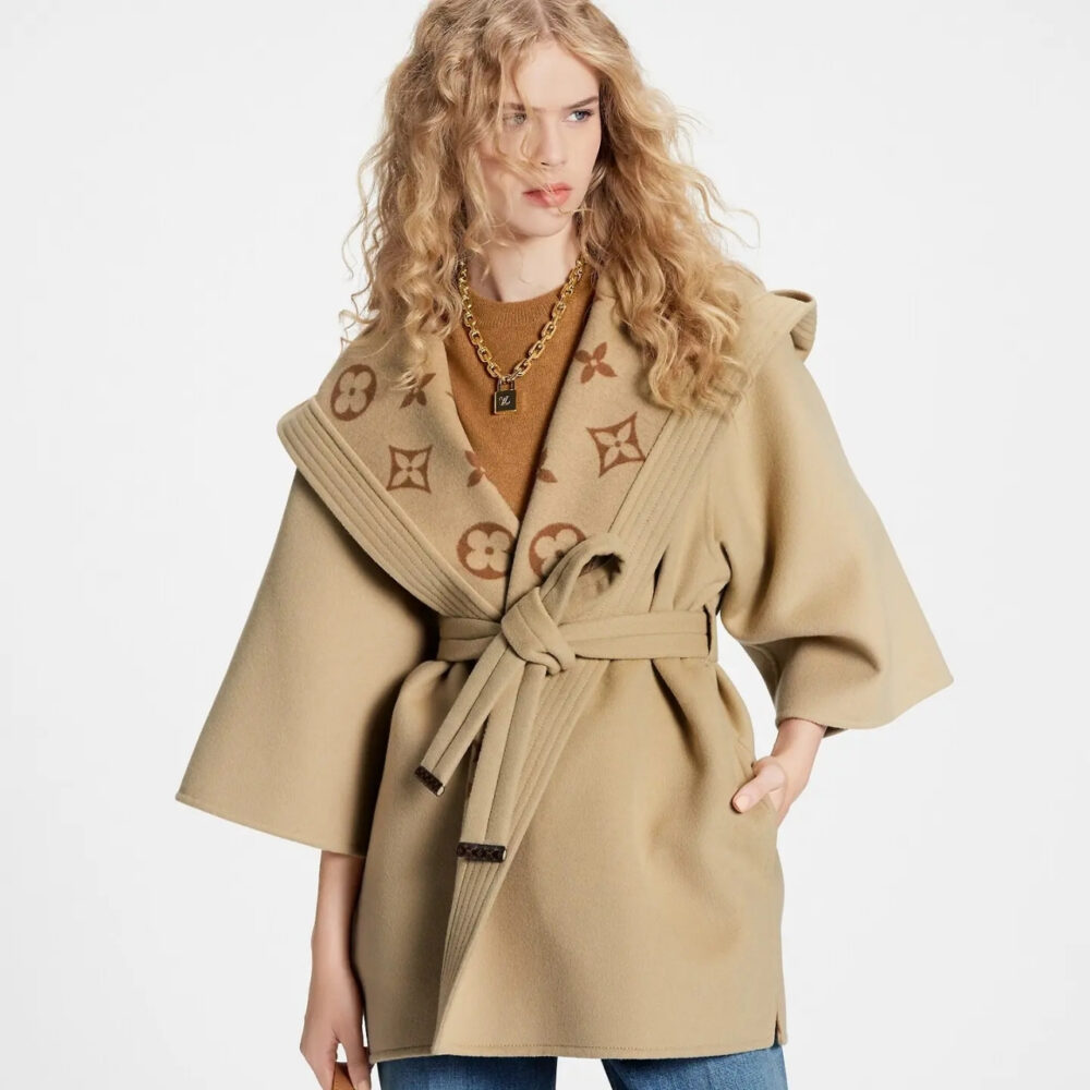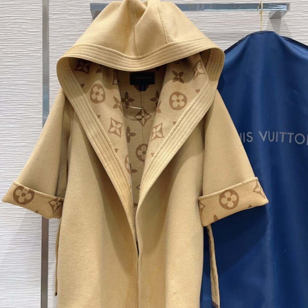 Replica 1:1 – Louis Vuitton Signature Hooded Wrap Robe Coat Beige 1AB713