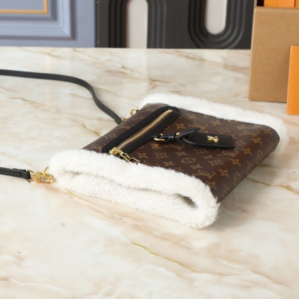 This Teddy Mitt handbag features classic Monogram canvas with striking distressed metal hardware and a stylish lining, offering both warmth and functionality. Its compact design provides ample space for small items like a phone and wallet. The signature nameplate highlights the brand’s travel heritage.