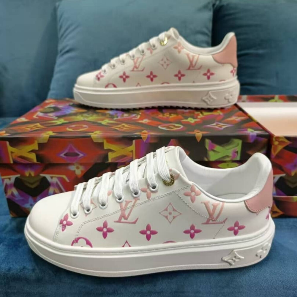 Replica 1:1 – Louis Vuitton Time Out Sneakers White With Pink Monogram
