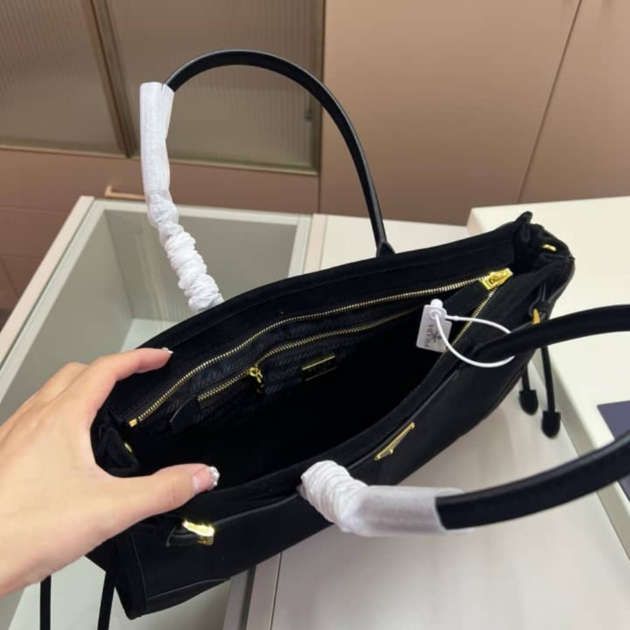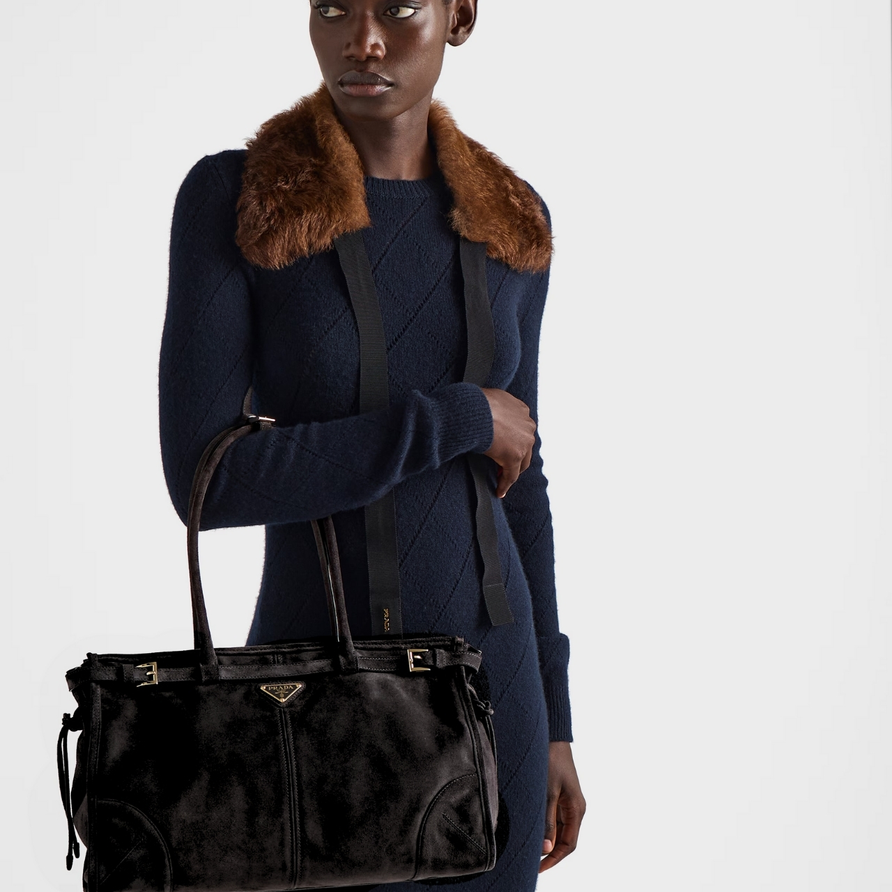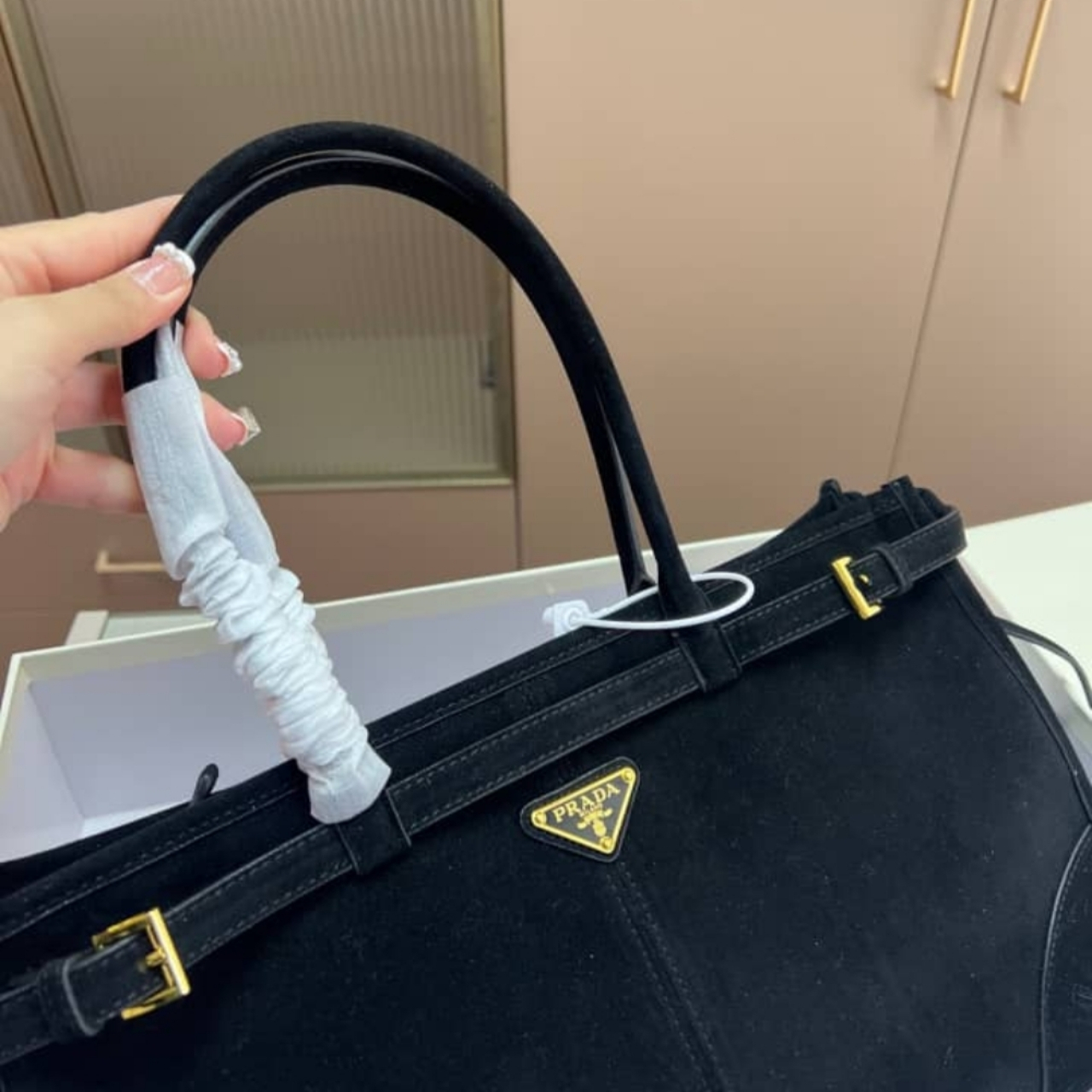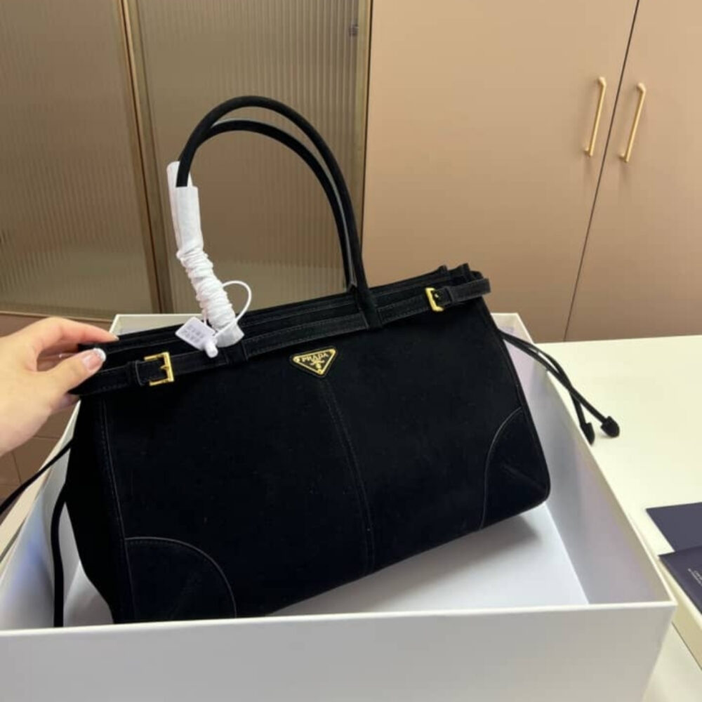 Replica 1:1 – Prada Bonnie Large Suede Handbag Black 38Cm 1BA433 2C4S F0308 V MOO