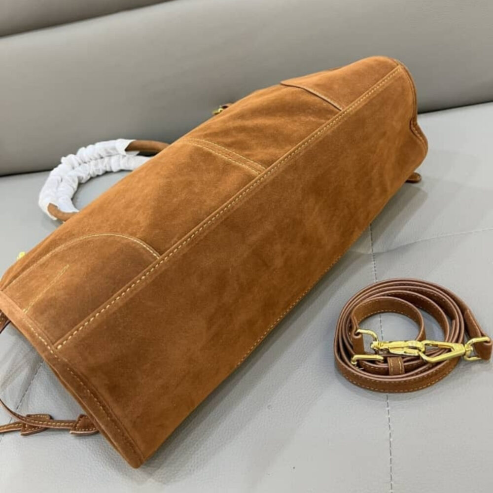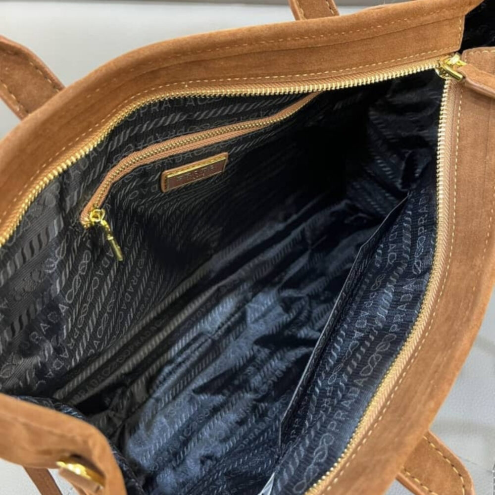 Prada Bonnie Suede Tote Bag Brown 38Cm 2VG128 2C4S F0401 V OOO / 38 x 30 x 12 cm / 14.9 x 11.8 x 4.7 inches
