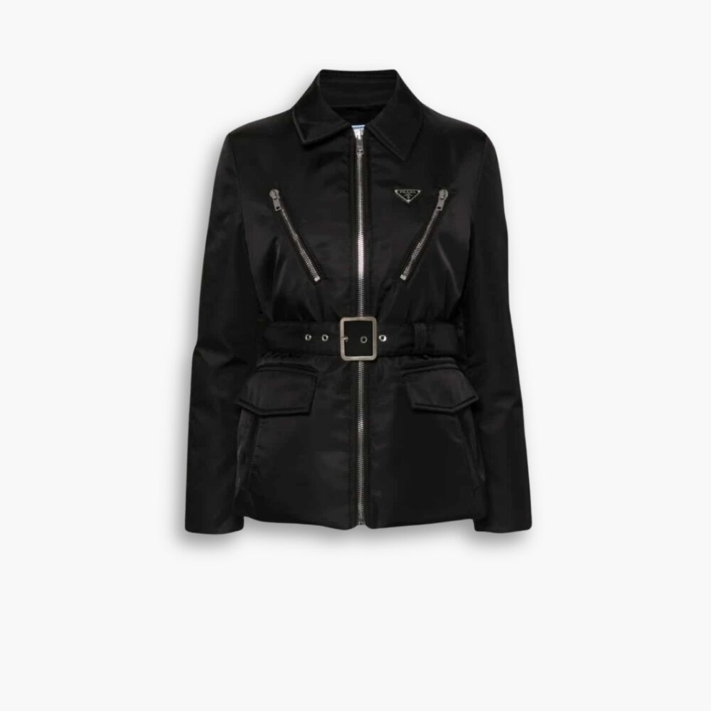 Sleek, structured, and effortlessly modern — this black belted jacket redefines everyday sophistication. The design features a cinched waist with a statement buckle belt that flatters the silhouette, while bold front zippers and flap pockets add a utilitarian edge. Its smooth, lustrous finish elevates the minimalist design, making it a timeless outerwear essential that transitions seamlessly from day to night.