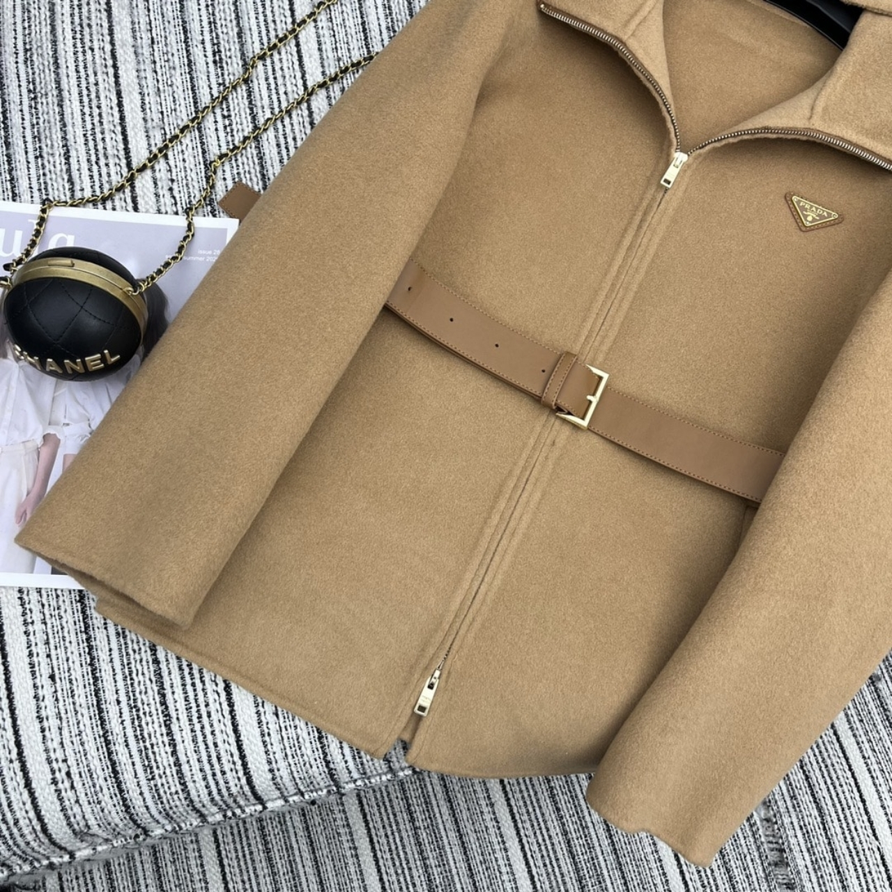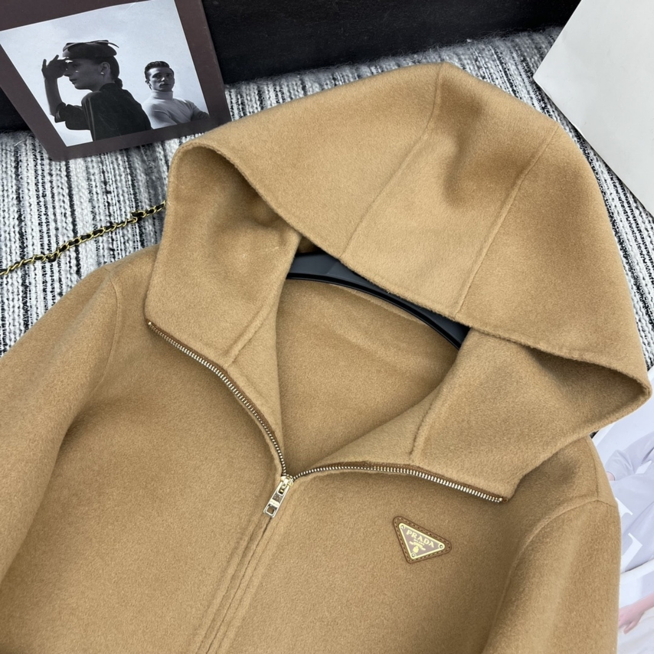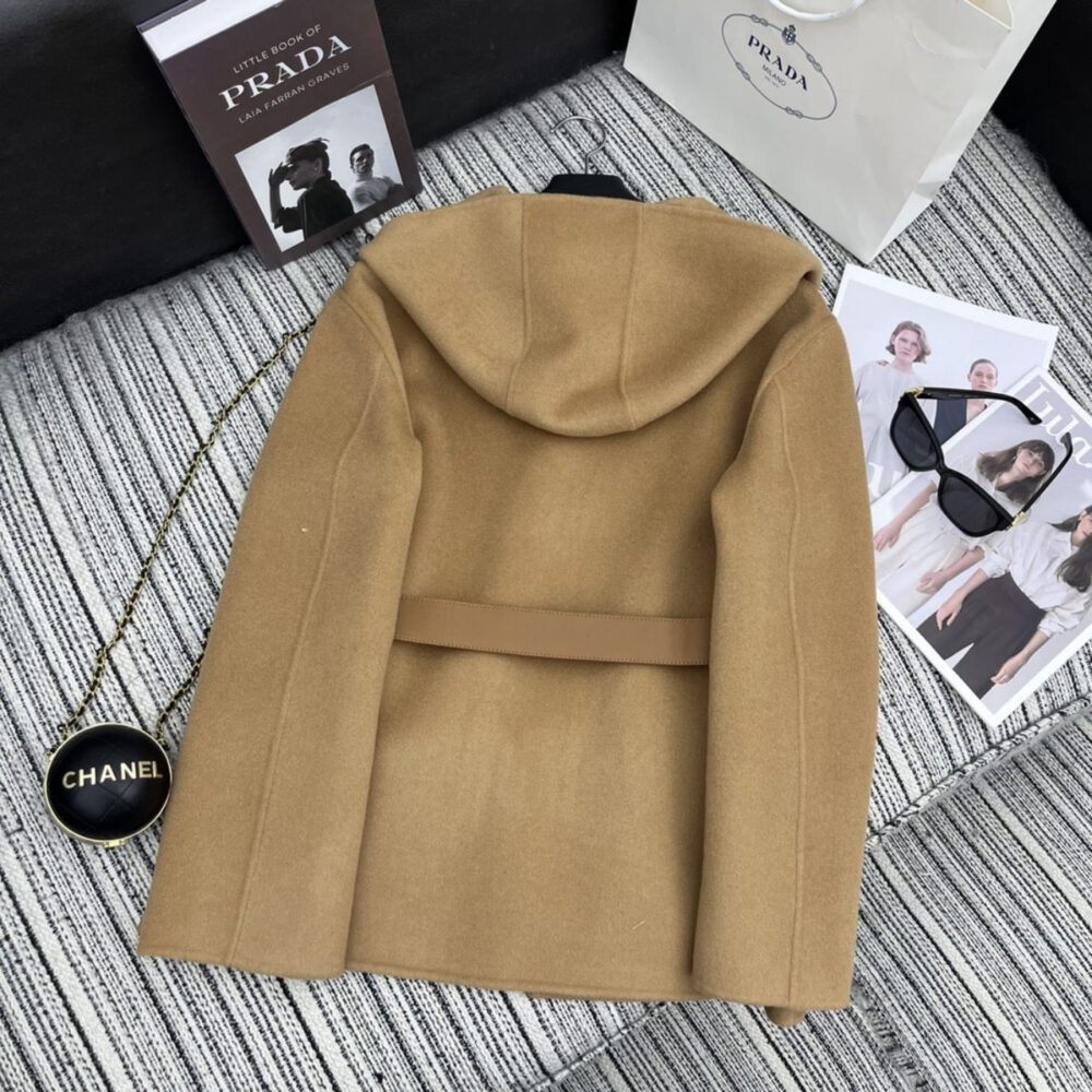 Replica 1:1 – Prada Wool Coat With Hood And Leather Belt Brown