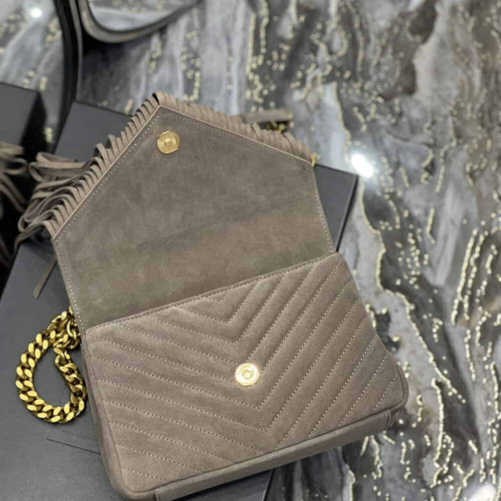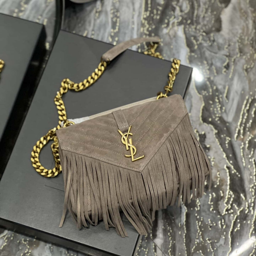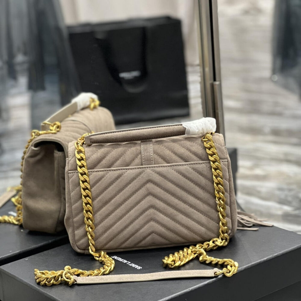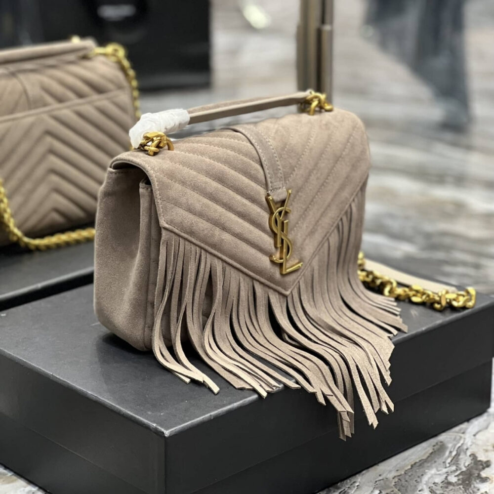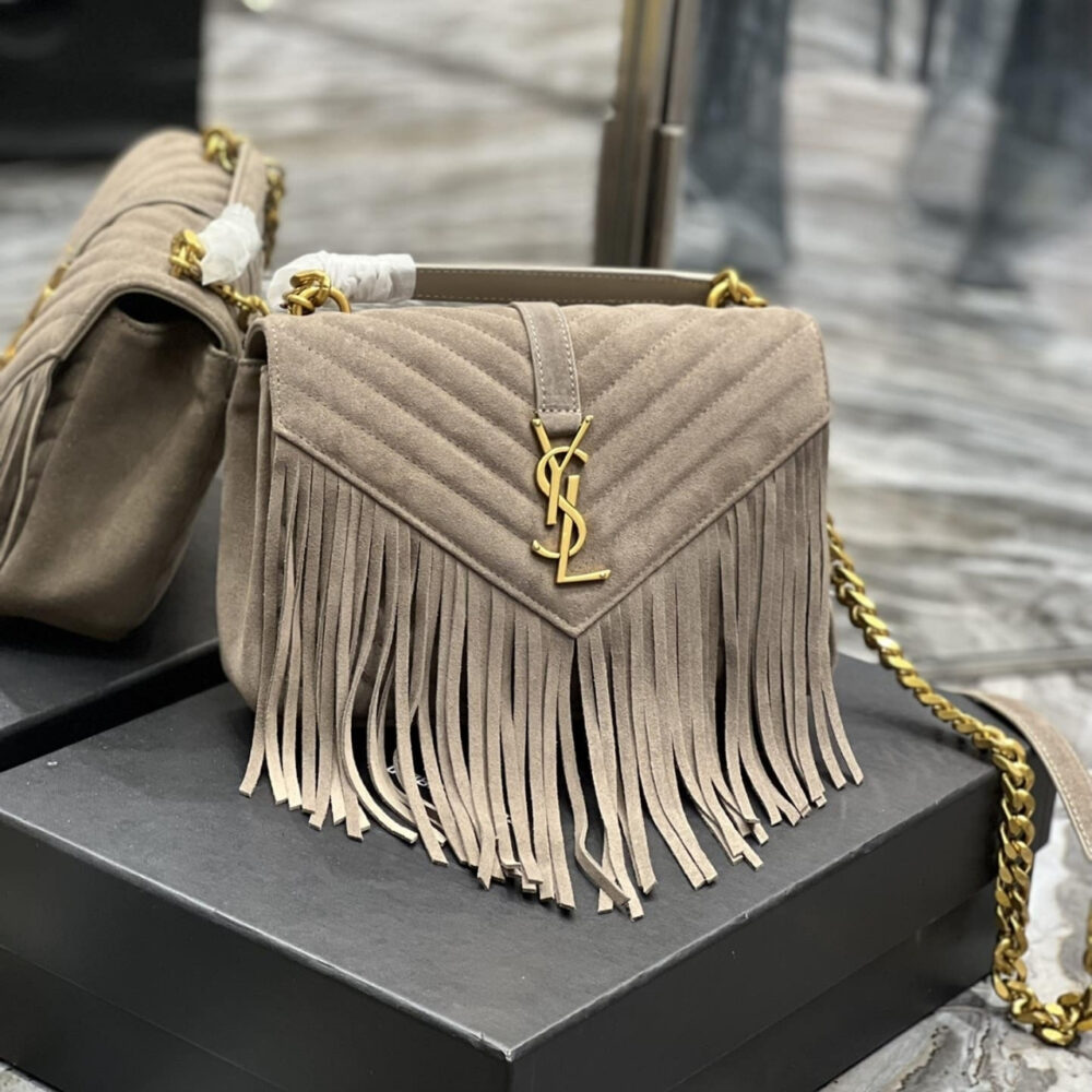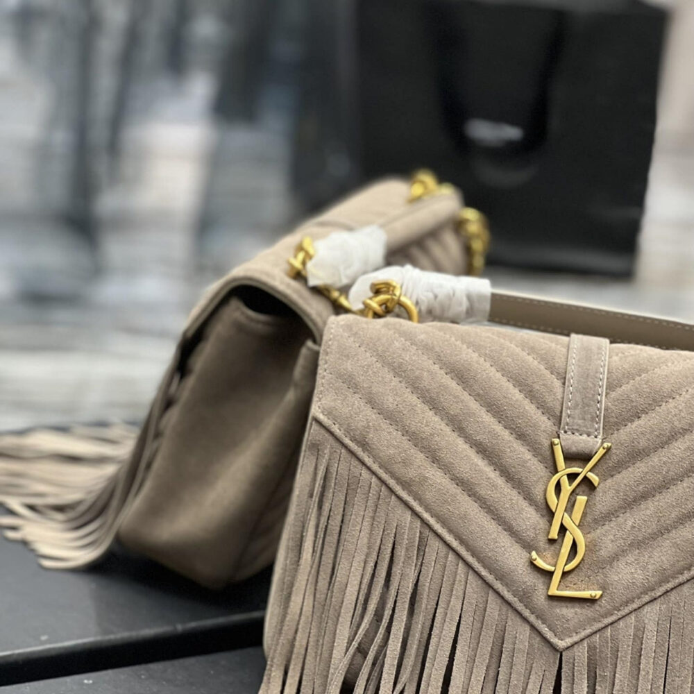 Replica 1:1 – Saint Laurent College Medium Fringed Suede Shoulder Bag Beige 24Cm
