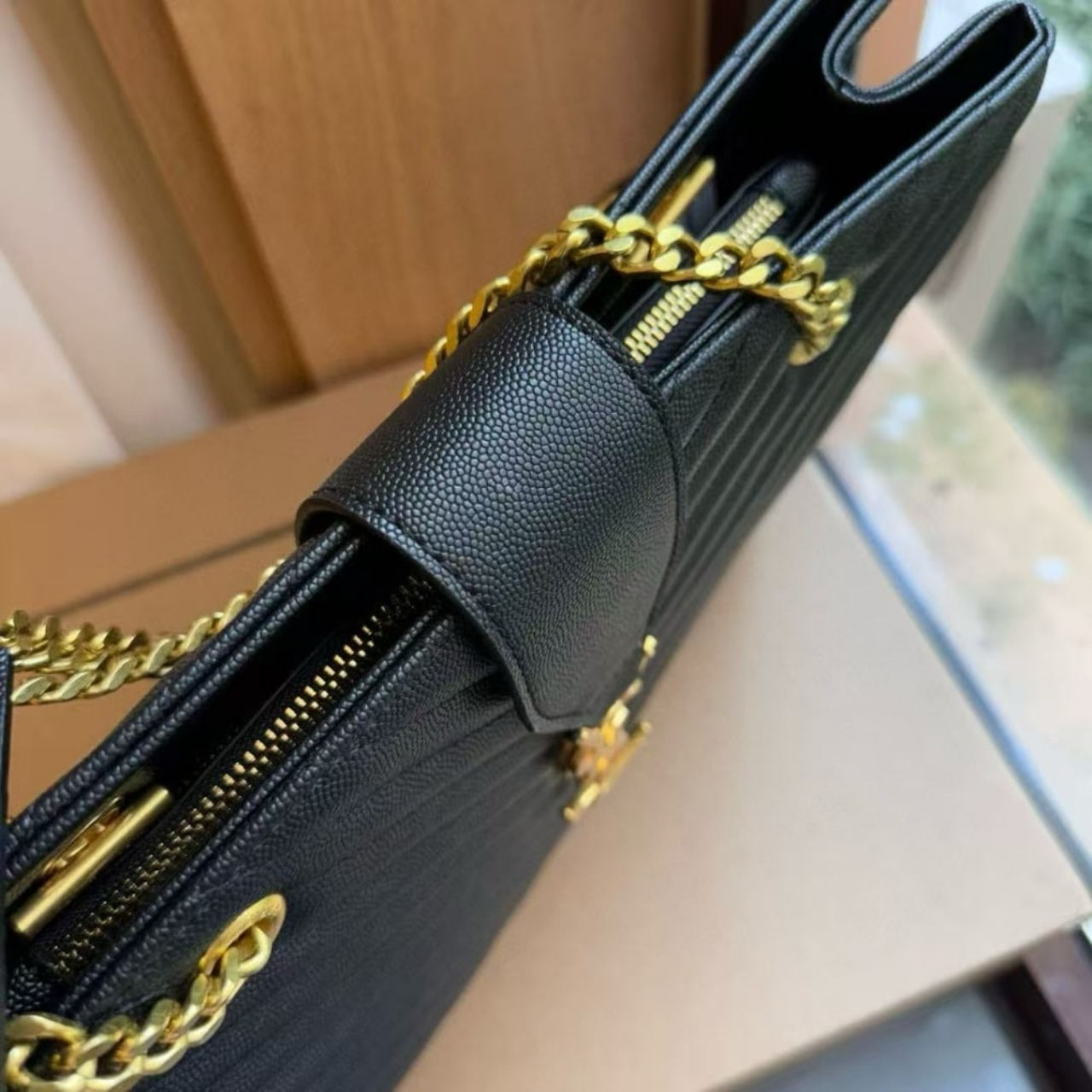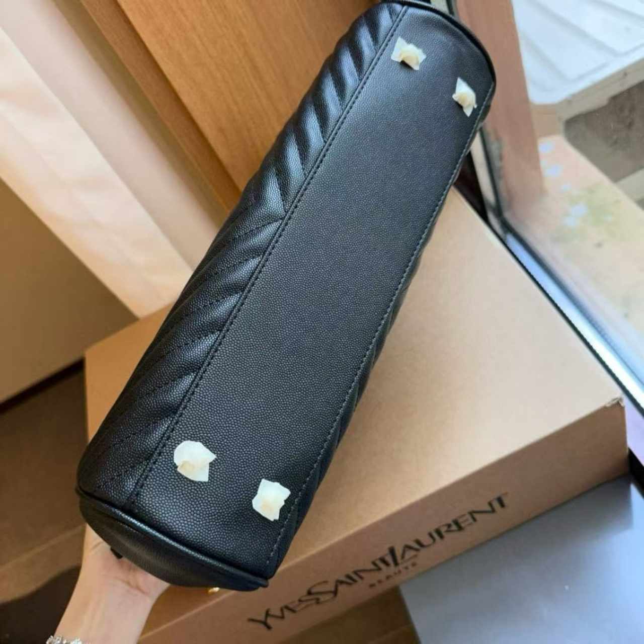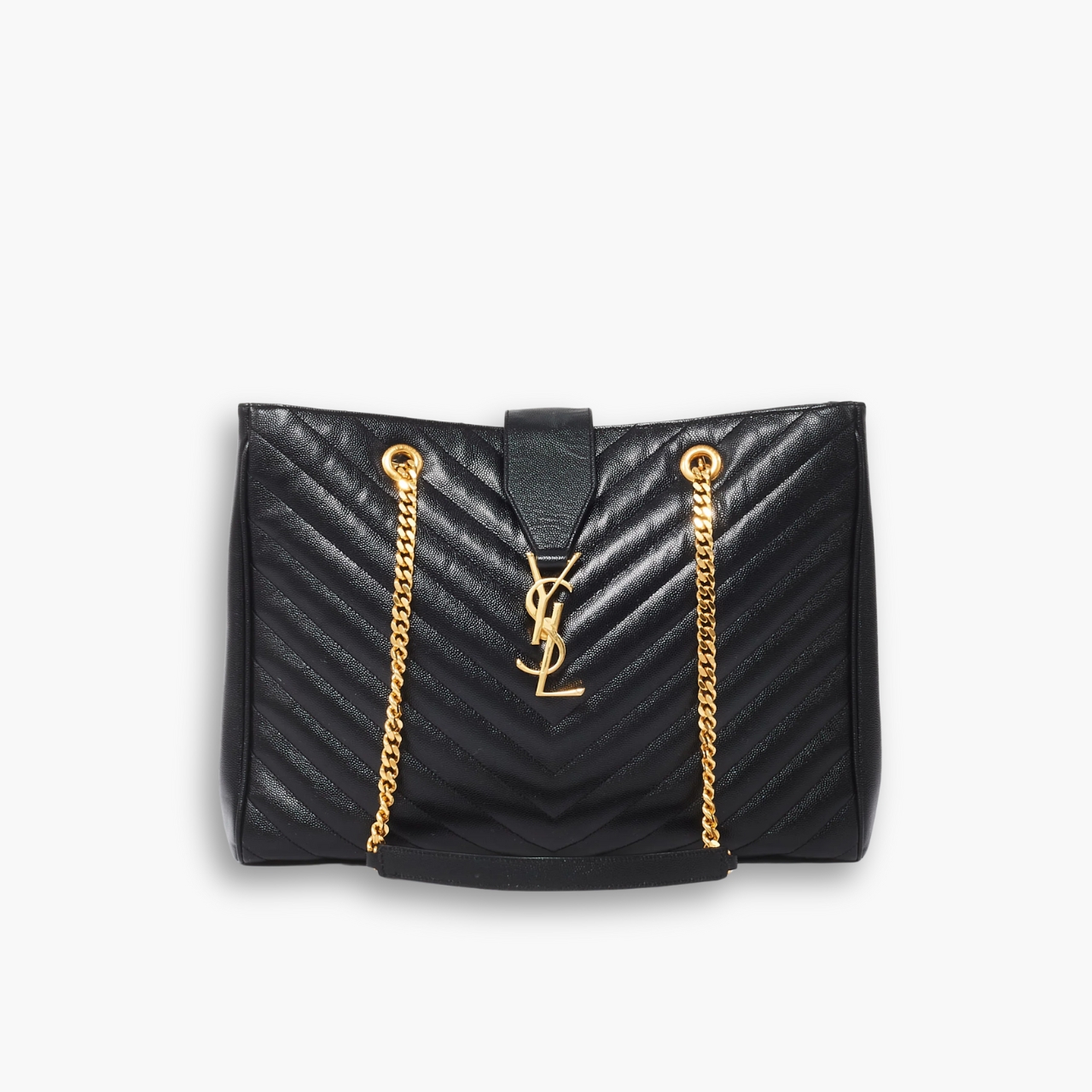 YSL Grain De Poudre Matelasse Chevron Large Monogram Shopping Bag Black/ 35 x 9.5 x 25 cm / 13.7 x 3.7 x 9.8 inches