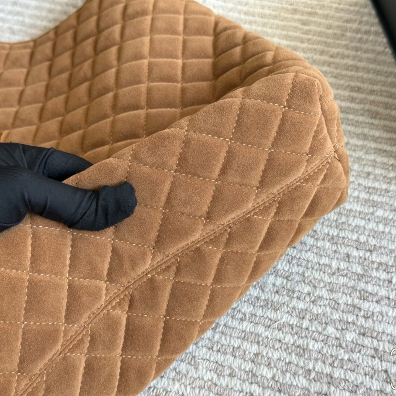 This Saint Laurent Large Tote Bag in suede brown embodies effortless luxury with its oversized. The plush suede texture is elevated by the bold gold YSL monogram, making it both a statement piece and a versatile everyday companion. Spacious yet refined, it blends practicality with iconic Parisian elegance.