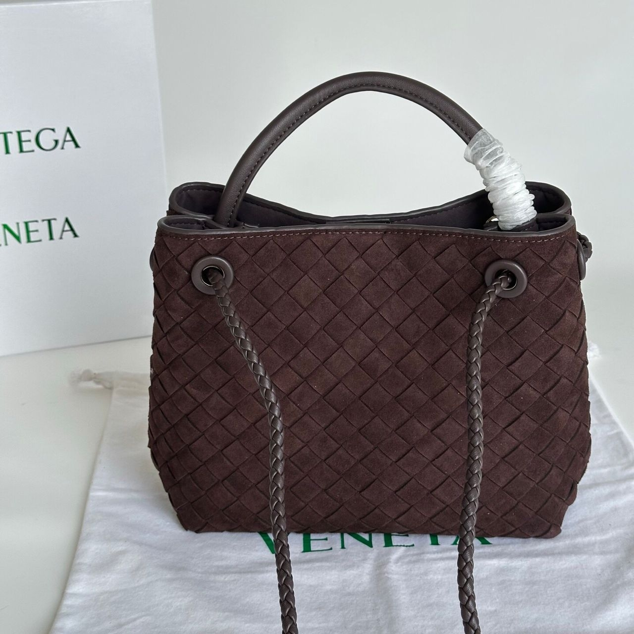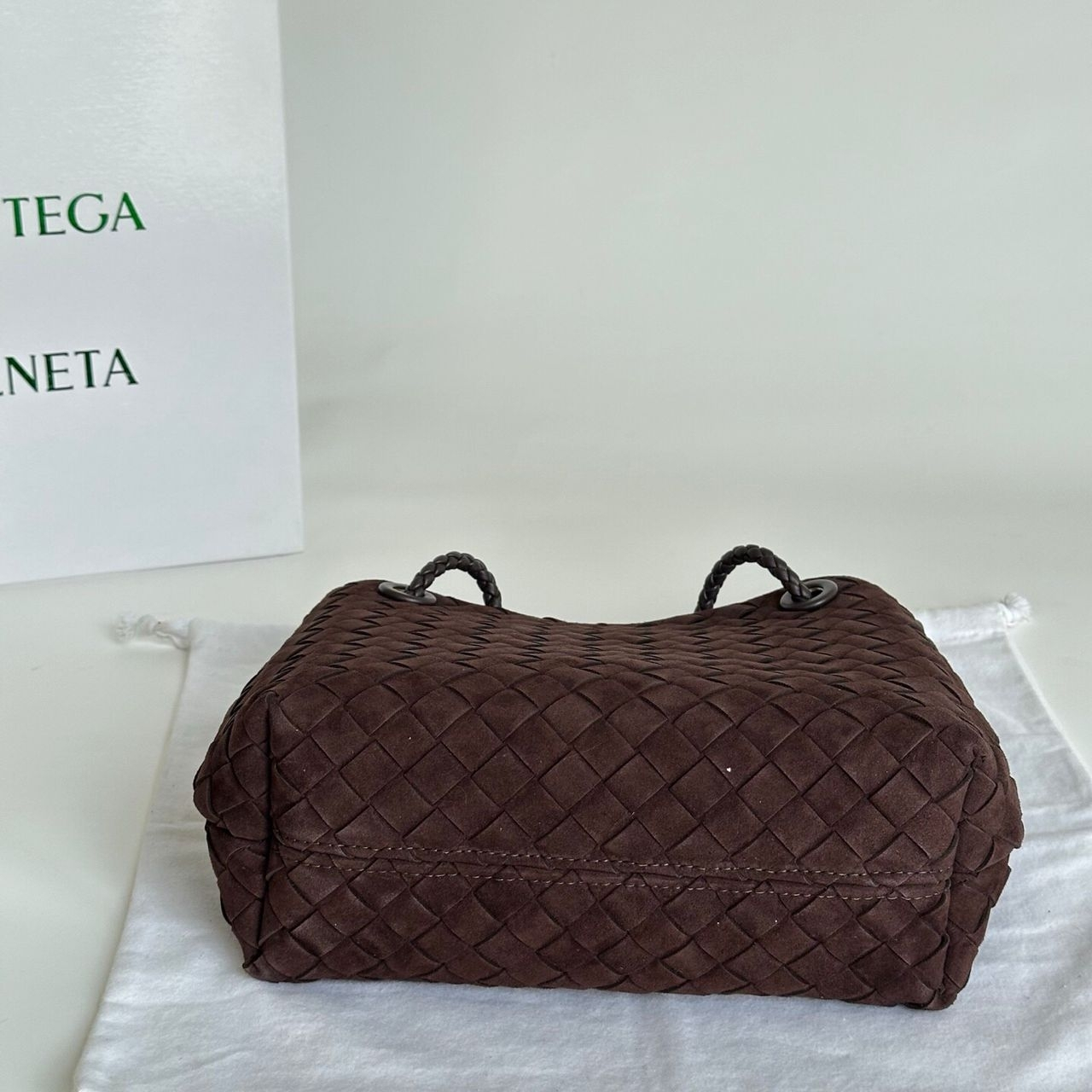– Medium Intrecciato suede top handle bag with sliding cross-body strap