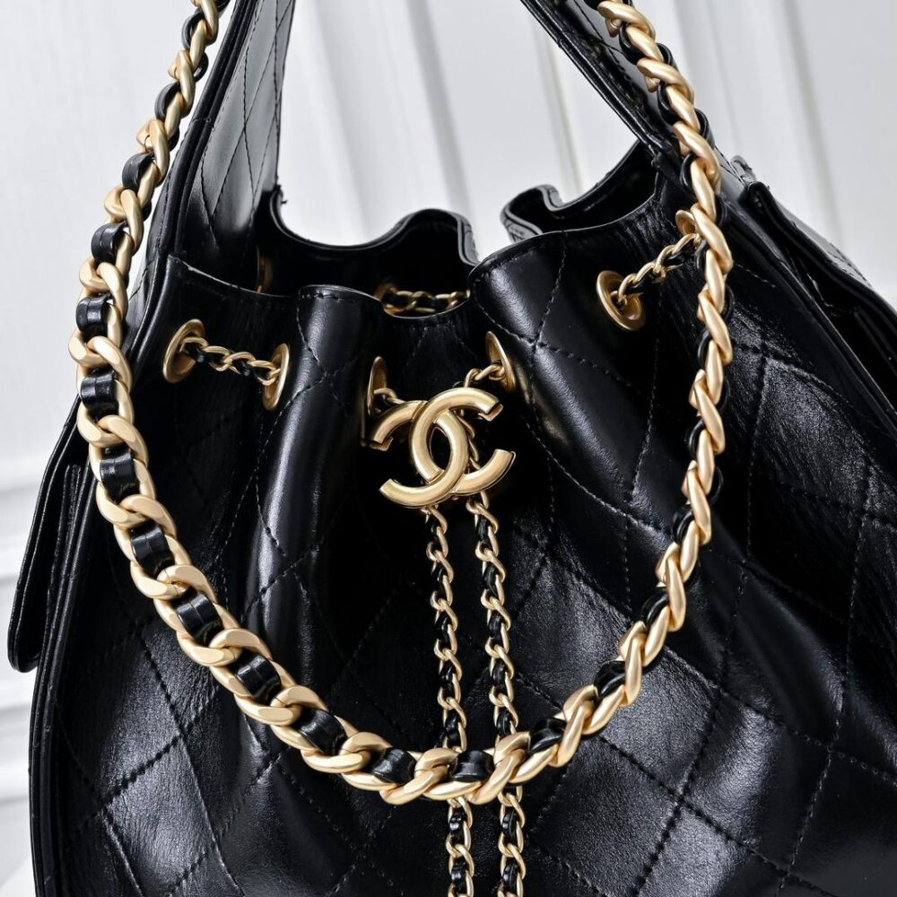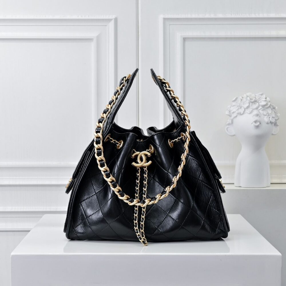 Super Vip 1:1 – Chanel 25 Small Handbag Gold-Tone Metal Black 26Cm AS5293