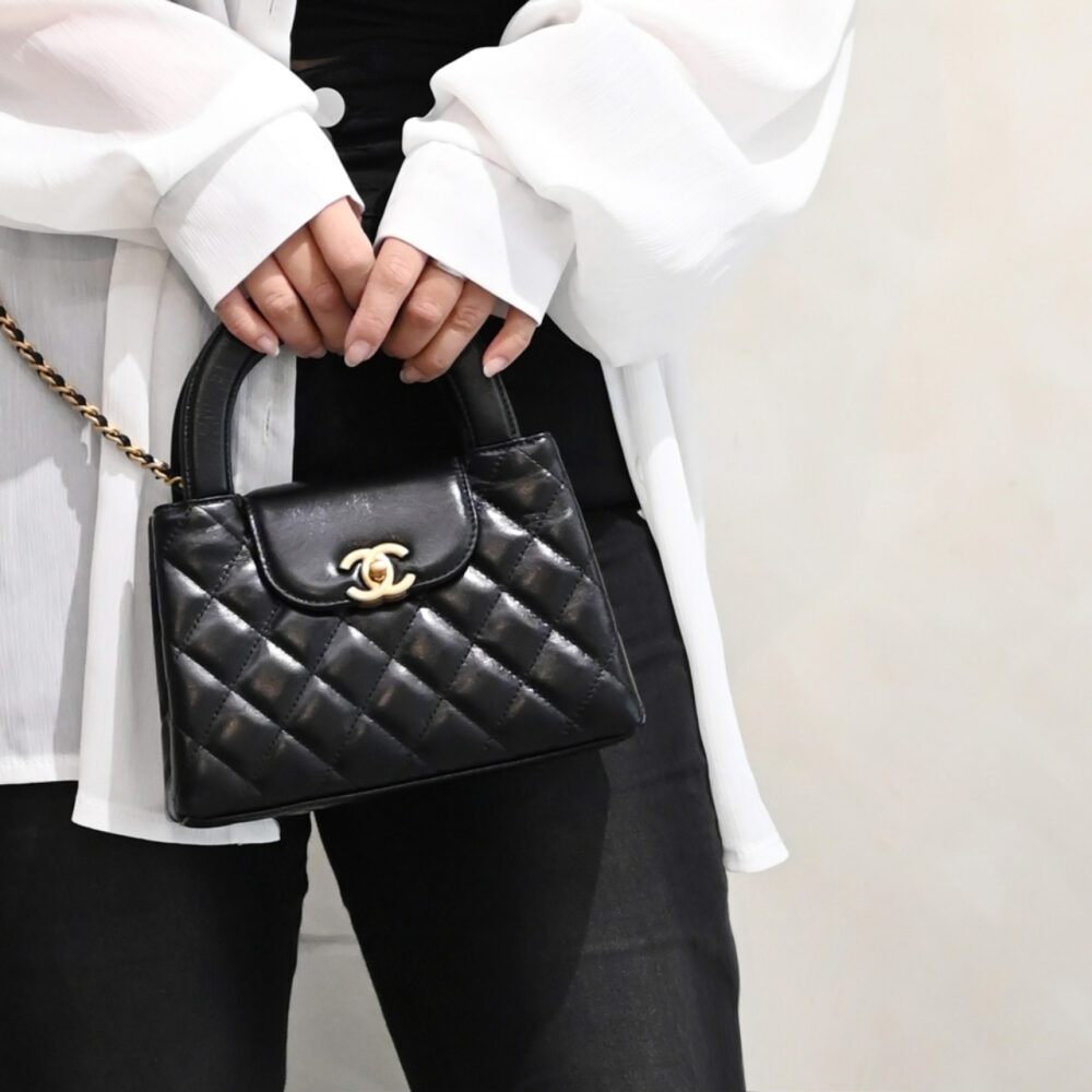 It features a structured top handle, signature CC turn-lock closure, and a woven chain strap for versatile styling. A chic and modern update to the Chanel classic, perfect for both casual elegance and formal sophistication.