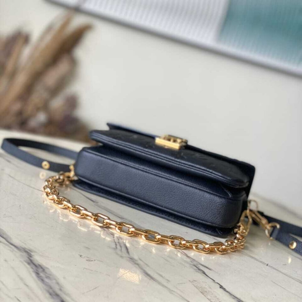 The trendy Pochette Métis East West bag is a fusion of brand signature and modern details. The design is sewn from Monogram Empreinte fabric, decorated with a heritage S-lock and a detachable chain, both made of shiny gold metal. The interior is delicately arranged, combined with an easily adjustable strap for flexible wearing.